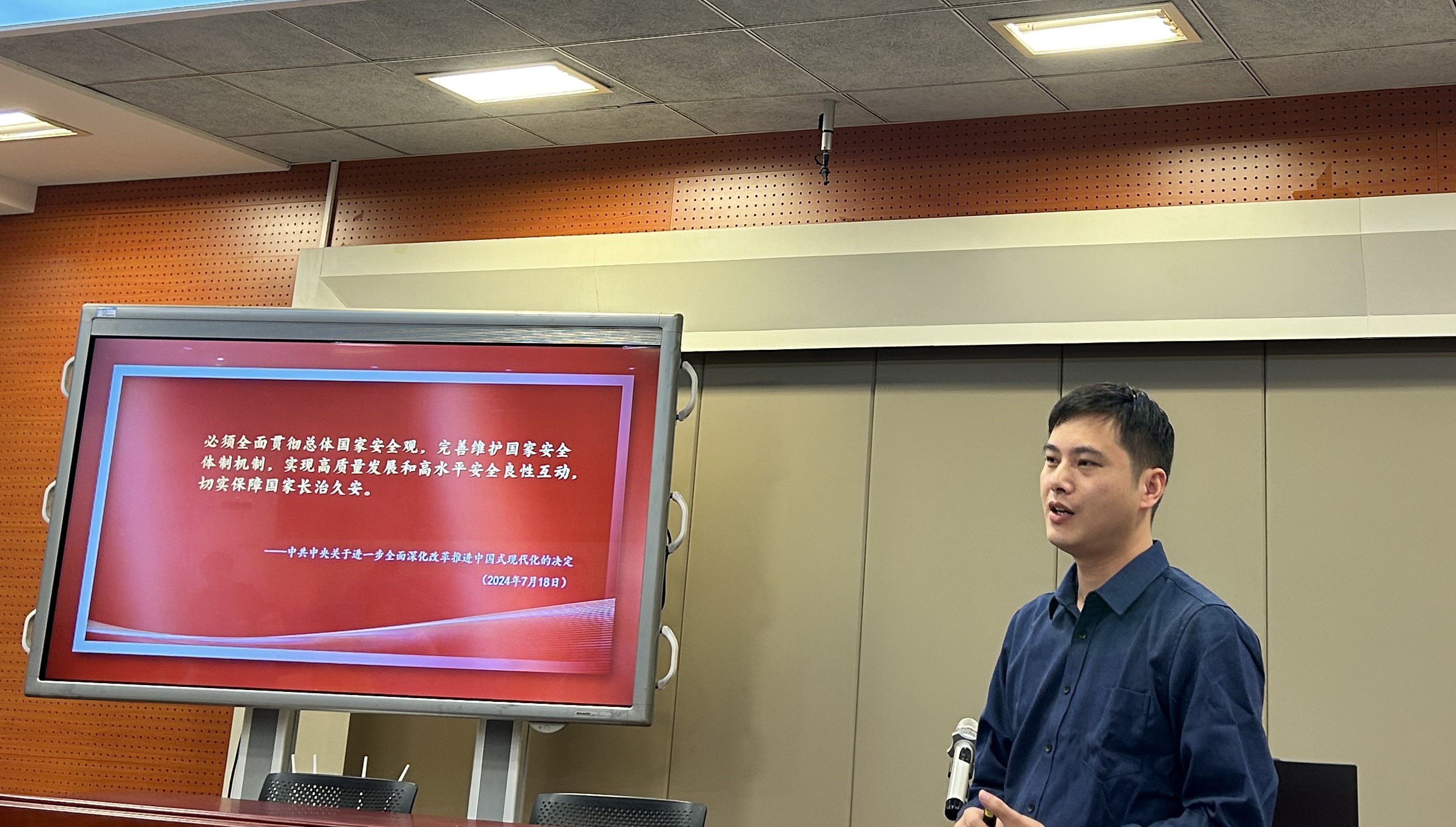 教学展示环节,皖西学院永利集团304am桂运奇老师,从国家安全是民族复兴的根基、国家安全的内涵、国家安全的实践成就三个方面,系统回答了什么是国家安全、为什么要维护国家安全以及怎样维护国家安全三个问题。安徽国防科技职业学院永利集团304am黄若兰老师,从国家安全的理论、我国国家安全的发展史和国家安全的现实挑战三个维度进行了重点讲解。六安职业技术学院思政部陈士帅老师,从九三阅兵中中国先进的武器装备讲起,重点讲解了国家安全的概念、国家安全的重要性和新时代国家安全的形势,分析了总体国家安全观是新时代国家安全工作的根本遵循。皖西卫生职业学院思政部周挺老师,以“持续加强理论武装维护意识形态安全”为主题,通过“一棵树”的案例,详细讲解了加强意识形态安全教育的重要性和重要举措。永利集团304am林凤英老师,以同学们的困惑为问题链,对国家安全的概念、大安全观中的逻辑关系进行了系统讲授。