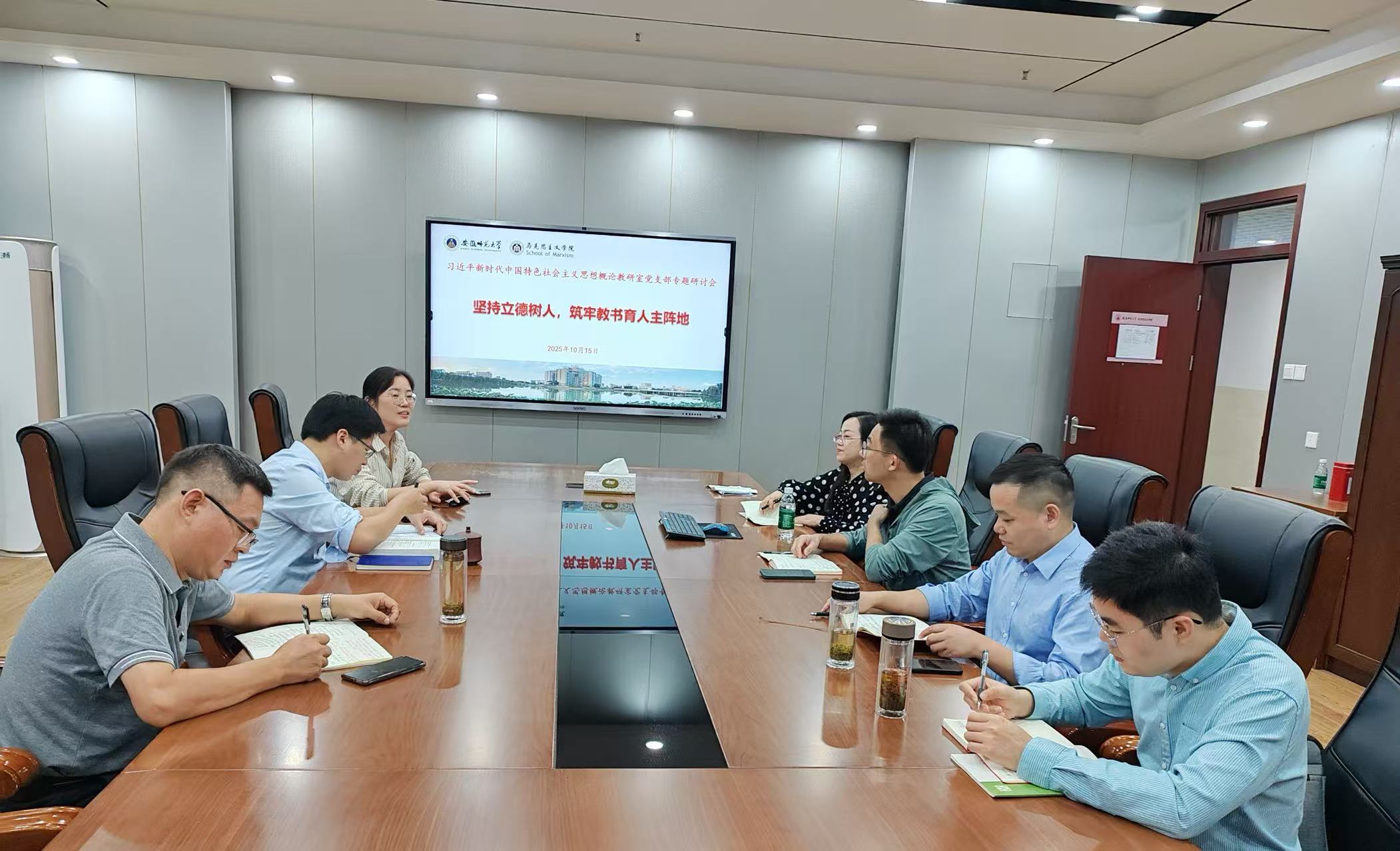 2025年10月15日下午,习近平新时代中国特色社会主义思想概论教研室党支部在G407会议室开展了“坚持立德树人,筑牢教书育人主阵地”专题研讨会。院党委书记严宏教授及党支部成员参加会议。会议由支部书记沈燕培教授主持。