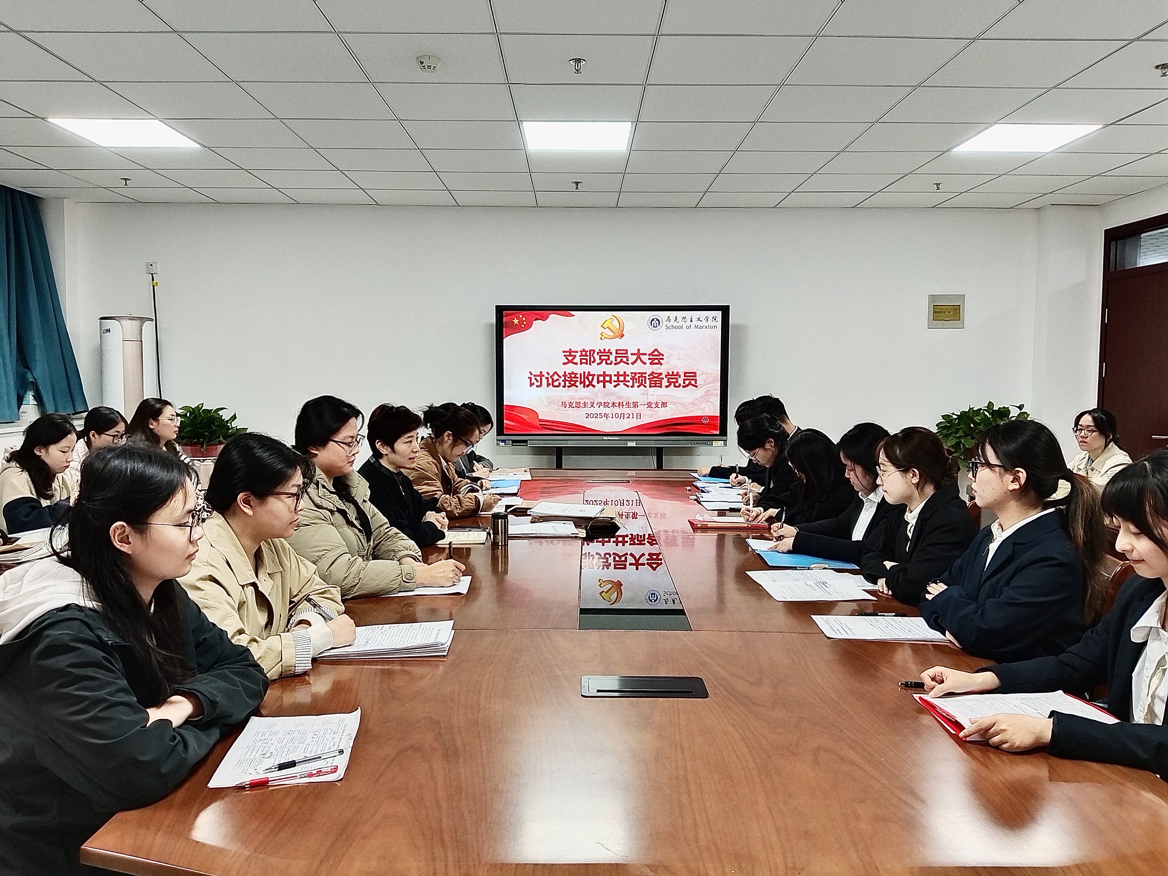 10月21日晚,永利集团304am本科生第一党支部在学院G211会议室召开支部大会,讨论接收预备党员相关事宜。院党委副书记刘玉艳莅临指导,会议由支部书记陶娴静主持,全体党员参会。