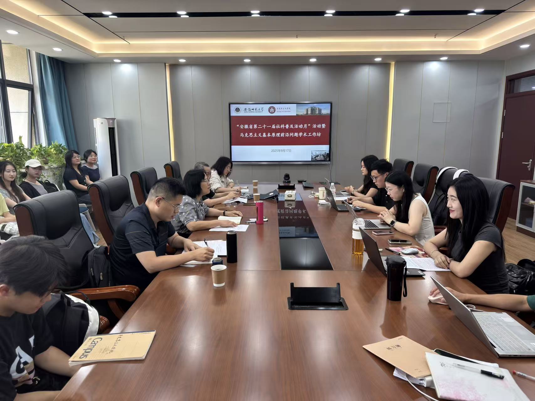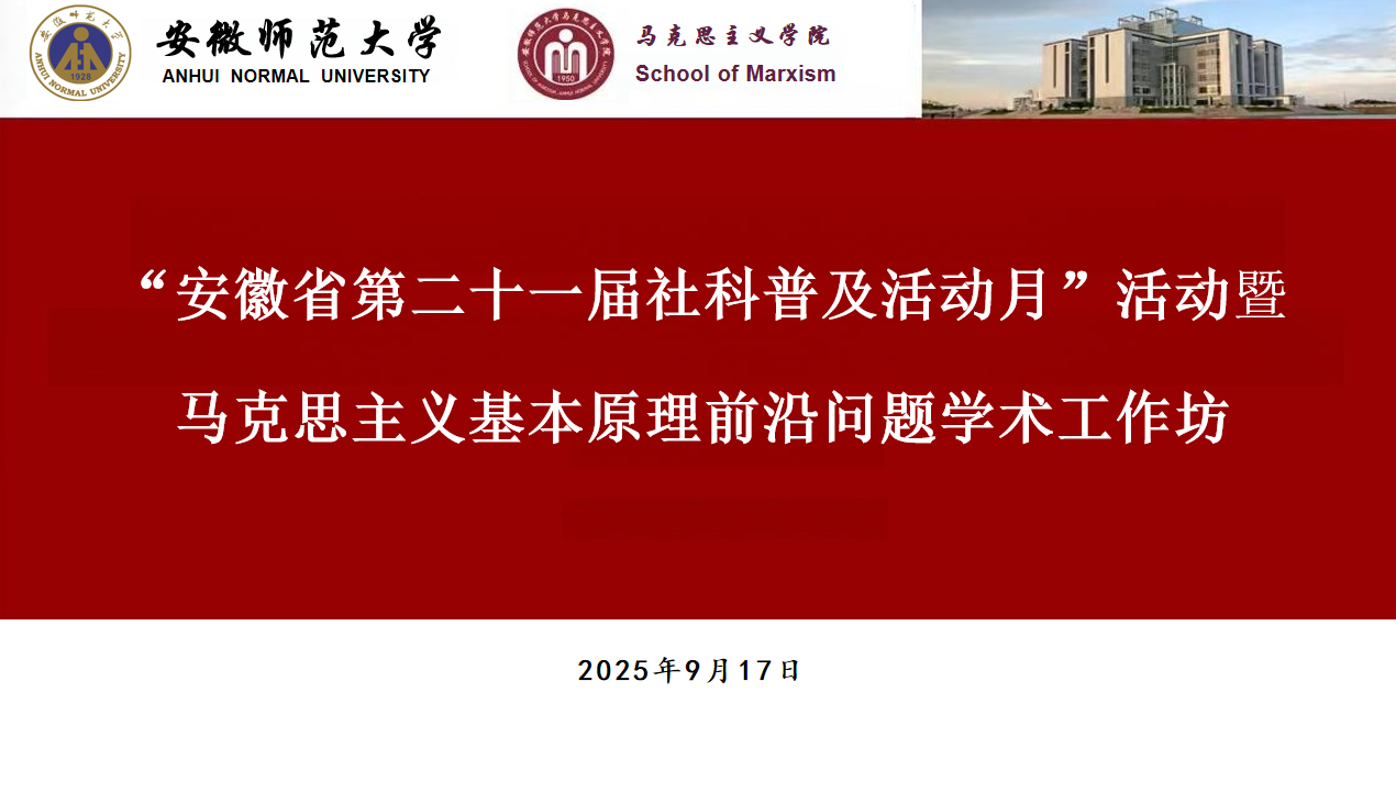 据悉,本次活动系学院作为第五批“安徽省社会科学知识普及基地”积极响应安徽省第二十一届(2025)社会科学普及月活动所进行的系列学术活动之一,旨在进一步推动师生对党的创新理论和马克思主义基础理论的理论学习和学术研究。本月还会举办新时代文化使命与思想政治教育创新发展、学习习近平文化思想暨2024级马克思主义中国化研究方向博士生毕业论文选题会等专题性学术工作坊等社科普及活动。