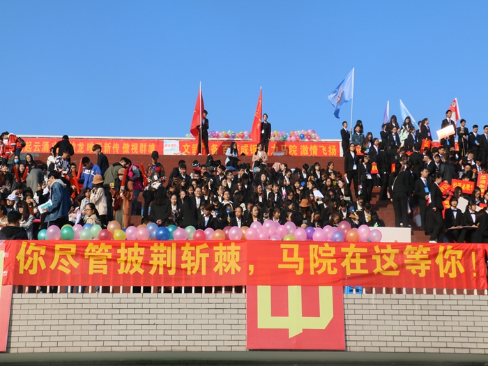 早上八点整,运动会开幕式正式开始。开幕式分为运动员入场、升国旗奏国歌、领导发言、各学院排舞表演以及体育表演几个流程。伴随着慷慨激昂的进行曲,各个学院的方阵队依次走过主席台,向我们展示了其独有的创意与风采。最后压轴出场的是永利集团304am,在马院党委副书记梁齐军老师,本科生辅导员周楠老师及夏盼盼老师的带领下,方阵队高喊着“文武兼备,百炼成钢,魅力马院,激情飞扬”的响亮口号,意气风发地走进运动场,步伐整齐划一,展现了马院学子积极进取、力争上游的精神风貌。