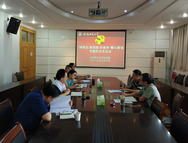 为着力严肃党内政治生活,建设党内政治文化,净化优化政治生态,深入扎实开展“讲政治、重规矩、作表率”专题警示教育,9月6日下午,学院党委领导班子召开“讲政治、重规矩、作表率”警示教育专题民主生活会,学院领导班子全体成员参加了会议。会议由院党委书记傅绪中主持。