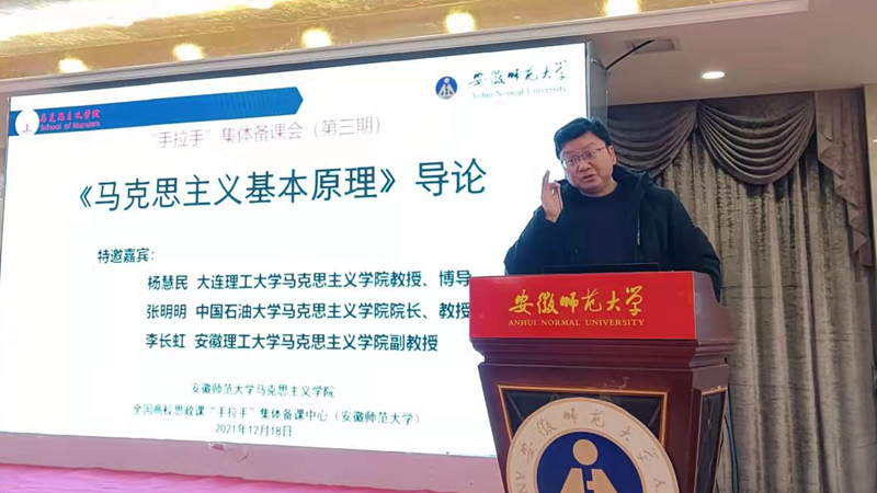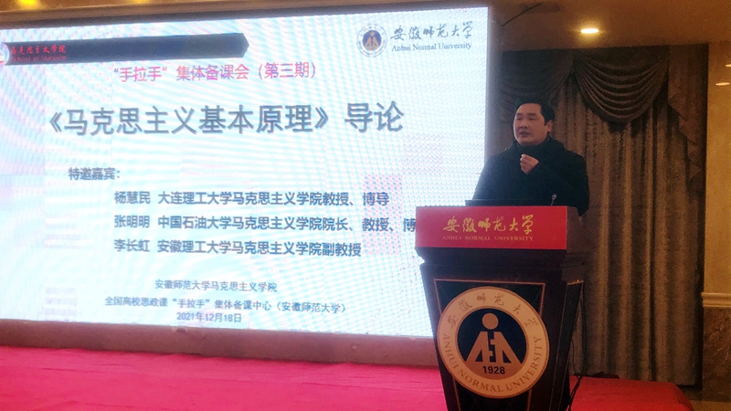 12月18日上午,由永利集团304am、全国高校思政课“手拉手”集体备课中心(304am永利集团——安徽省)举办的全省思政课“手拉手”第三期集体备课会在海螺国际大酒店顺利召开。此次集体备课会围绕《马克思主义基本原理》(以下简称“原理”)课程导论部分,采取线上线下相结合的方式进行,邀请了中国石油大学、大连理工大学、安徽理工大学以及在芜高校“原理”课程教师50余人参加。省内外40余名其他高校的“原理”课程教师在线上参与了集体备课会。备课会由永利集团304am“原理”课程组负责人单传友副教授主持。
