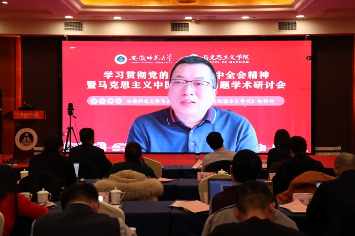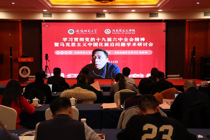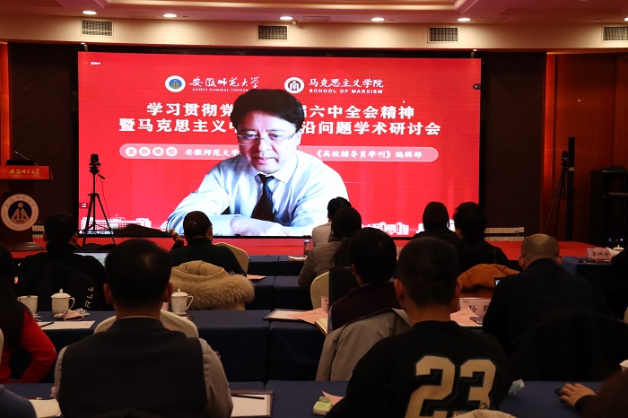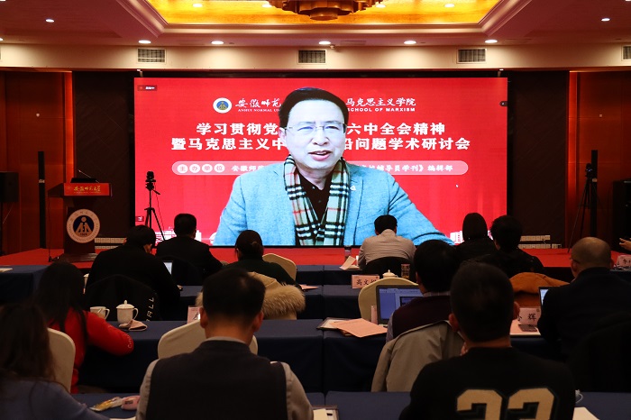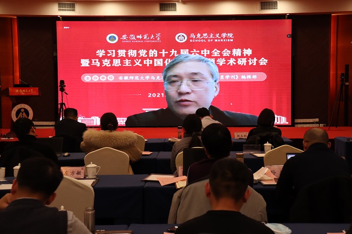 本网讯(永利集团304am 张鑫 李祥兴)12月26日下午,由永利集团304am、《高校辅导员学刊》编辑部主办的“学习贯彻党的十九届六中全会精神暨马克思主义中国化前沿问题学术研讨会”以线上线下相结合的方式成功举行。来自北京大学、复旦大学、浙江大学、兰州大学、华中科技大学、东北大学、西安交通大学、湘潭大学、南京师范大学、304am永利集团等高校的相关专家学者,以及《学习时报》《思想理论教育导刊》《毛泽东邓小平理论研究》《江淮论坛》等报刊编辑部负责人应邀参会,并做主旨发言。学术研讨会开幕式由永利集团304am院长、《高校辅导员学刊》编辑部主任姚宏志教授主持,校党委副书记蒋家平致开幕辞。线上线下参加本次学术研讨的超过1000人。