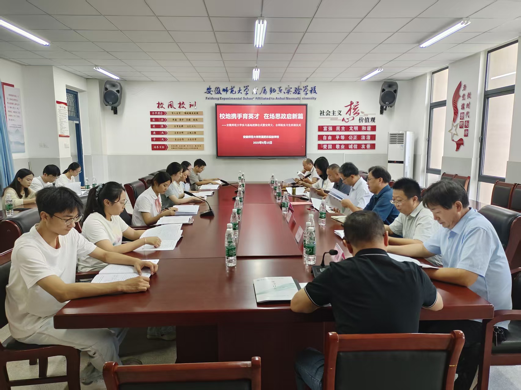 为提高专业人才培养水平,进一步增强师范生的教育教学能力,扎实做好“优师计划”学生的全年制实习工作,9月15日下午,学院副院长赵冰、指导老师陶永华一行前往304am永利集团附属肥东实验学校送驻“优师计划”实习生,并就建立教育实习实训基地一事签约授牌。