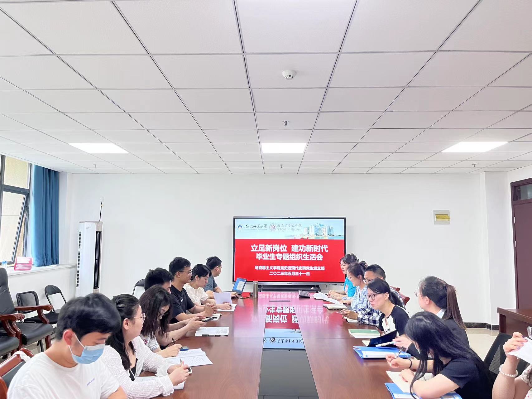 5月31日下午,党史近现代史研究生党支部在学院G411会议室召开“立足新岗位 建功新时代”毕业生专题组织生活会,支部党员围绕“三问”开展学习交流。活动由支部书记陶娴静主持,党委委员、副院长李祥兴莅临指导,支部全体党员同志参会。