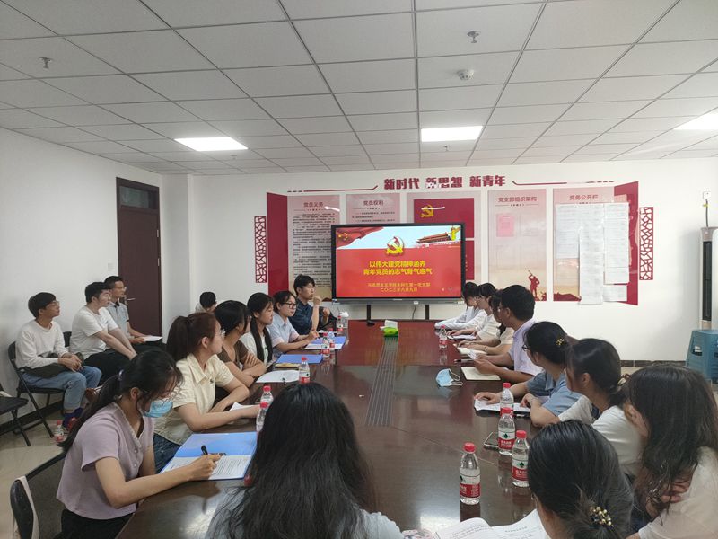 6月9日下午,支部书记周楠在学院二楼本科生党支部会议室为本科生第一党支部党员讲授《以伟大建党精神涵养青年党员的志气骨气底气》专题党课,会议由张凤主持。