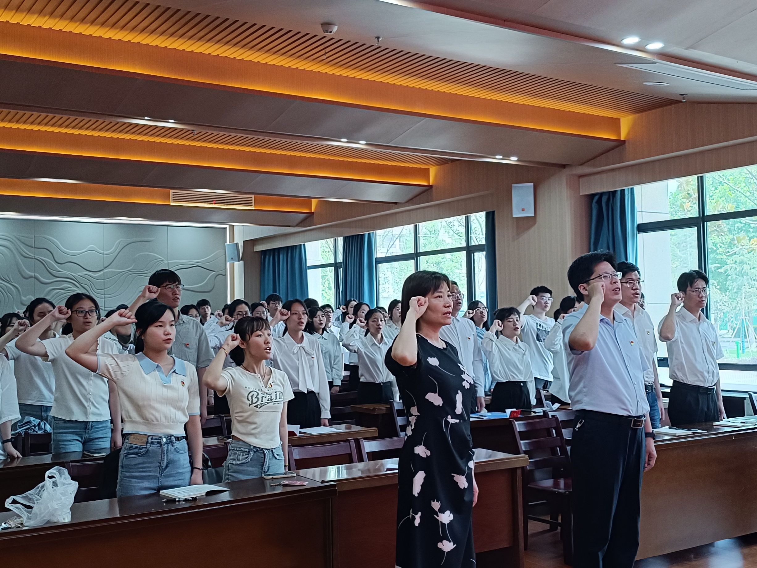 6月14日下午,永利集团304am在学院G107会议室举行2023年上半年新发展党员入党宣誓仪式。学院党委书记严宏、党委副书记刘玉艳、各学生党支部书记以及2023年上半年新发展党员全体参加仪式。本次宣誓仪式由党委副书记刘玉艳主持。