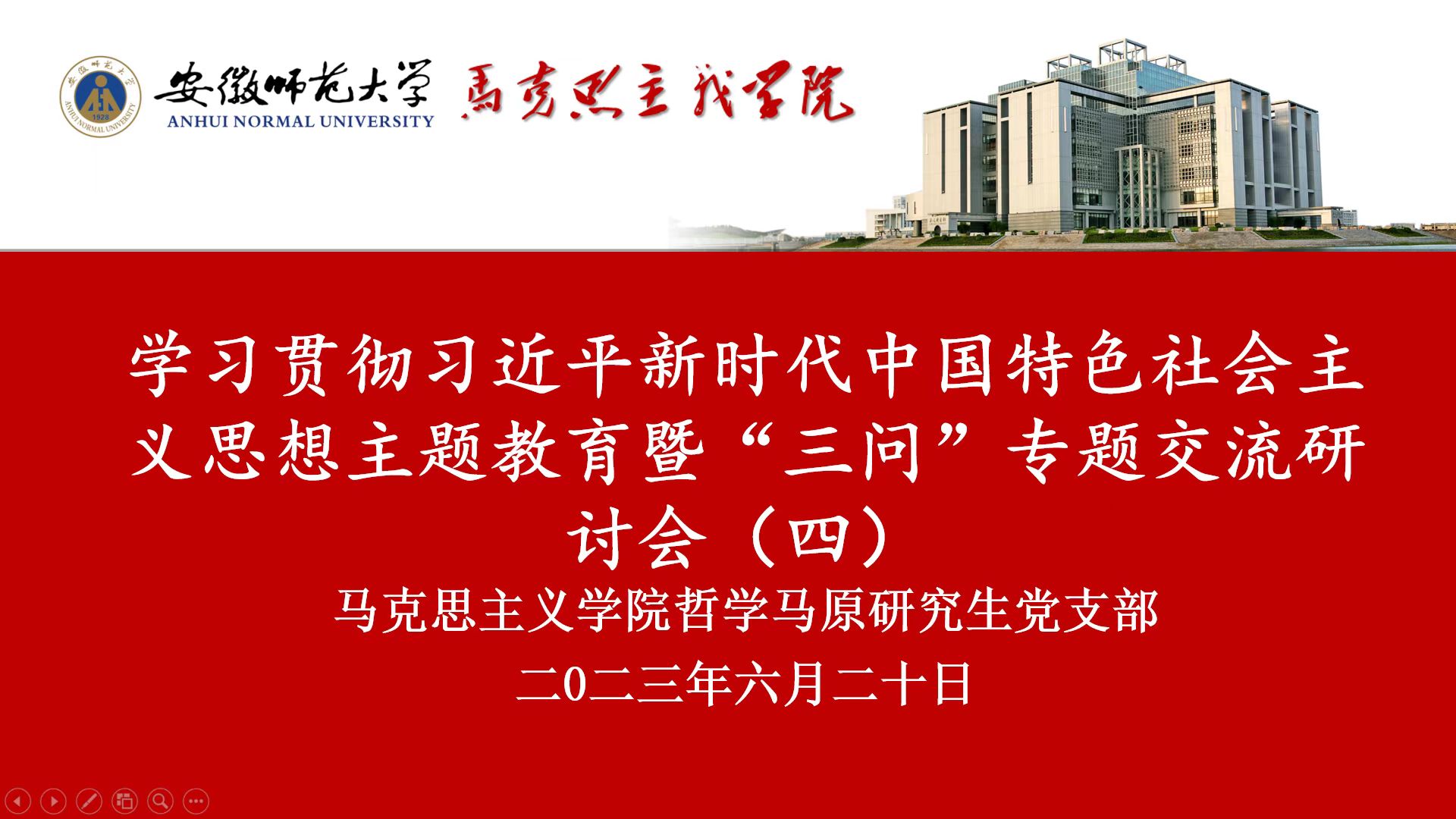 6月20日上午,永利集团304am哲学马原研究生党支部在腾讯会议开展学习贯彻习近平新时代中国特色社会主义思想主题教育“三问”交流研讨会。此次活动由支部书记张维欣主持,全体党员同志参加。