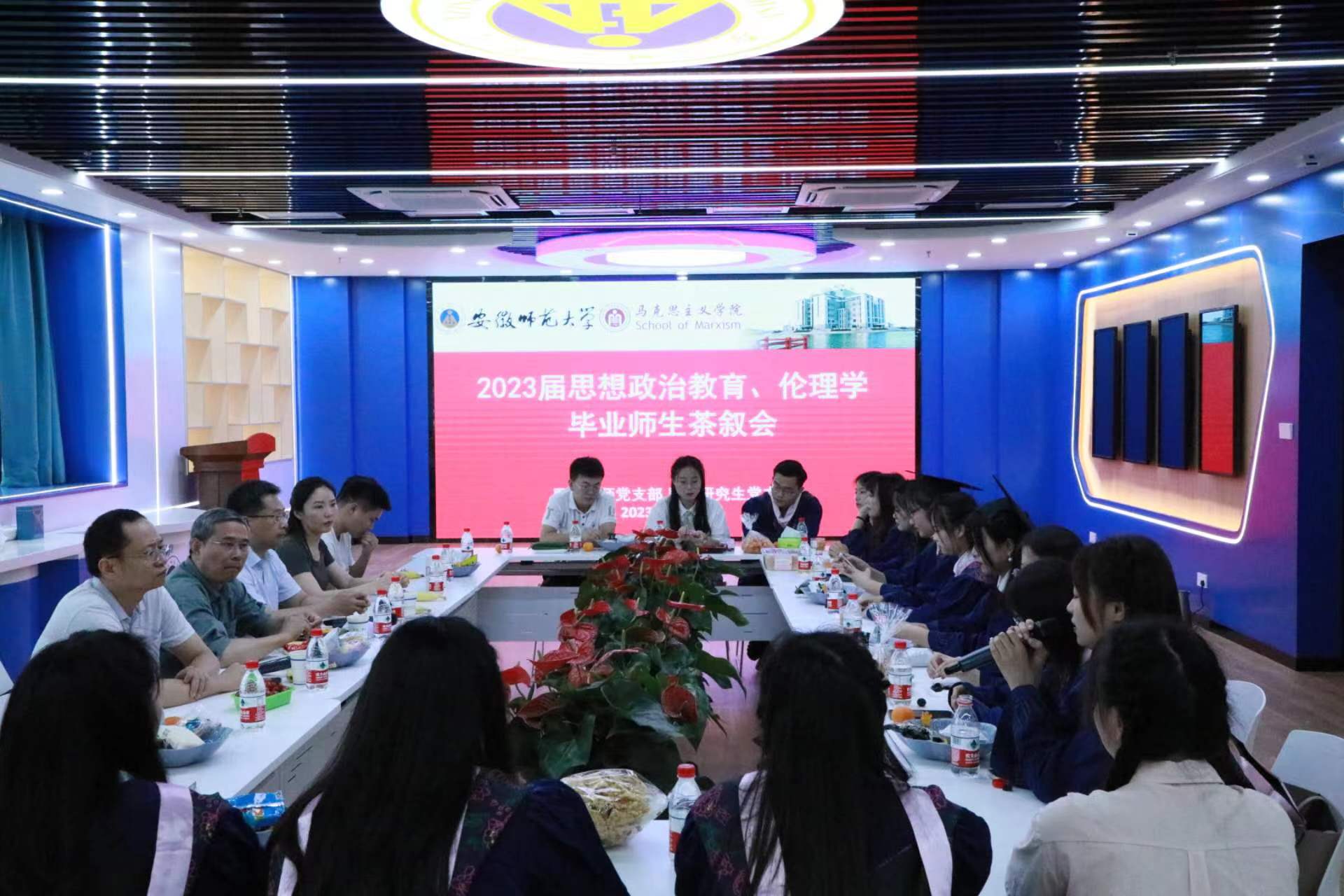 6月17日下午,思政教师党支部、思政研究生党支部在永利集团304amG308会议室举办2023届思想政治教育、伦理学毕业生师生茶叙会。赵冰副院长、路丙辉、杨希、陈勇等老师,2023届思政和伦理学毕业生,以及思政学位点和伦理学学位点全体同学共计50余人参加本次活动,本次茶叙会由思政教师党支部书记杨希主持。