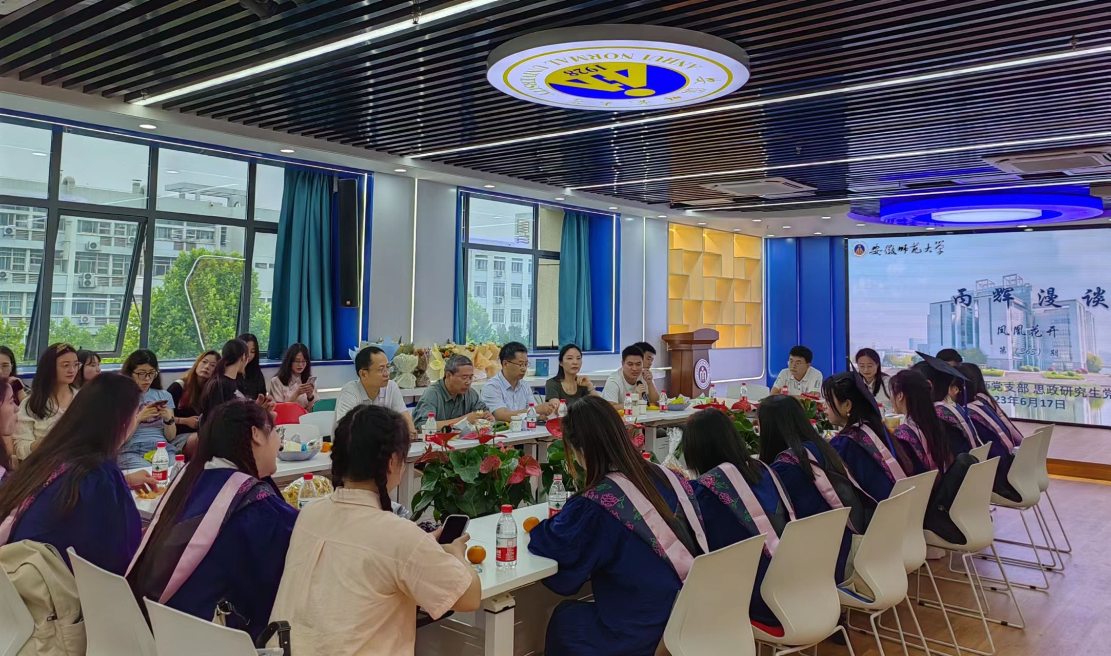 会上,杨希简要介绍了与会成员并说明本次活动旨在畅叙情谊、共话未来。参会的2023届毕业生依次发表自己的感言,叹息求学时光匆匆,感谢恩师谆谆教导,祝福母院蒸蒸日上。最后,参会的教师分别寄语2023届毕业生。杨希结合日常所悟,希望同学们无畏未来的不确定性与困难,保持积极向上的人生态度。陈勇强调当下是毕业生们人生的一个关键节点,要树立终身学习的理念,并在实践中建立自己的信念系统。赵冰希望毕业生能够处理好工作和生活之间的关系,做对社会有用的人。路丙辉结合理论与实践,强调不仅要在理论上做到终身学习,提高自己的理论修养,还要在实践上不断超越自己、超越现实,顶峰遇见最好的自己。