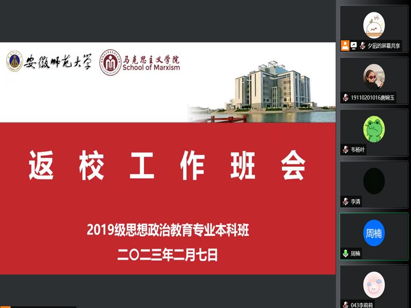 春季学期开学在即,为确保学生返校工作顺利开展,2月7日下午,学院19级本科班线上召开了“返校工作班会”。会议由辅导员周楠主持,19级全体本科生参加。