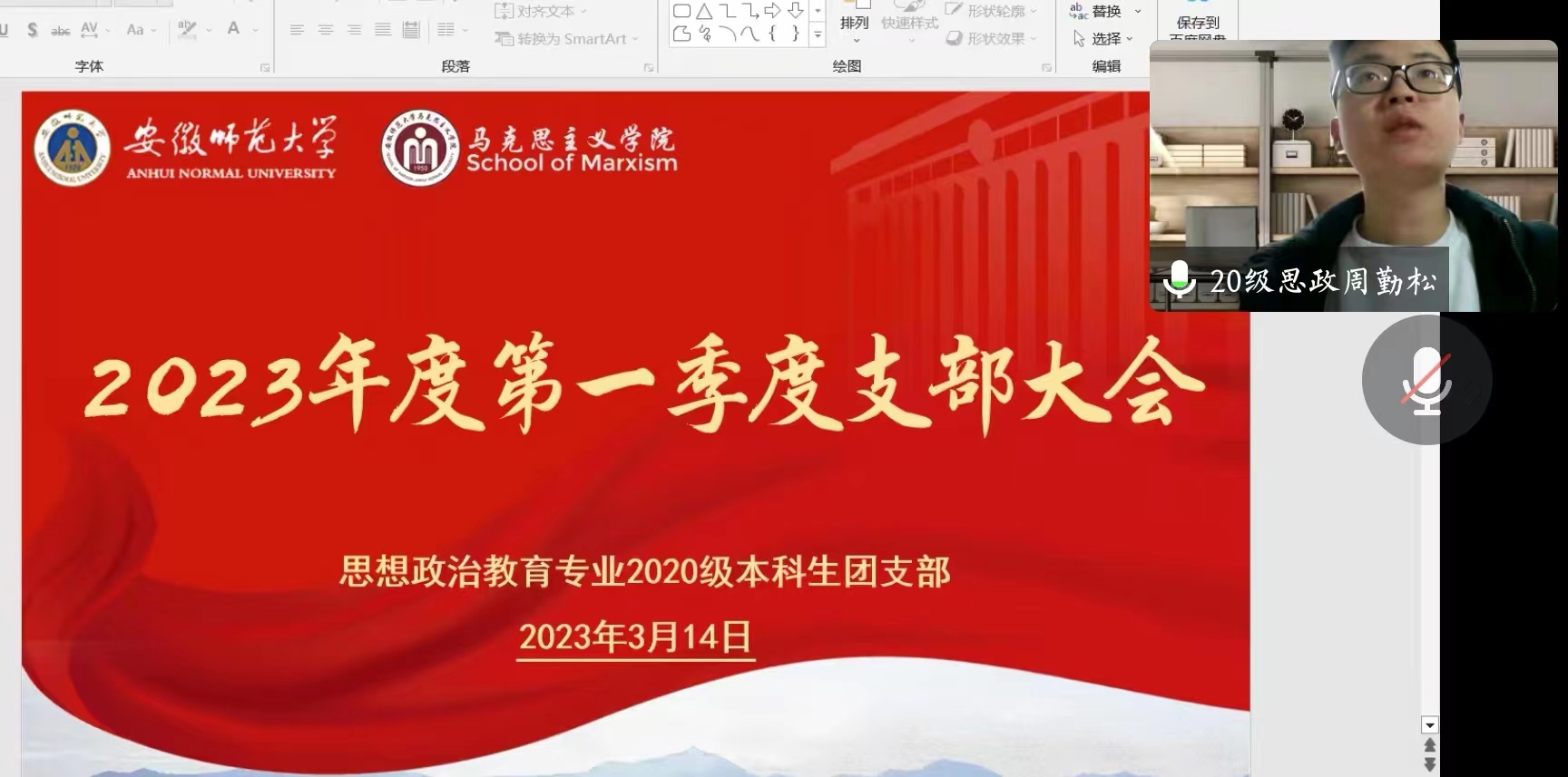3月14日晚,学院2020级思想政治教育专业本科团支部于线上召开了2023年度第一季度支部大会。会议由第二团支部书记周勤松主持,班级全体团员参加会议。