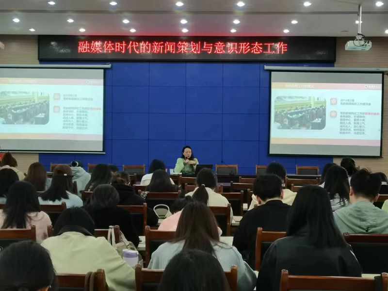4月26日下午,永利集团304am举办“融媒体时代的新闻策划”专题讲座。讲座由校党委宣传部田超老师主讲,辅导员周楠主持,百余名学生代表参会学习。