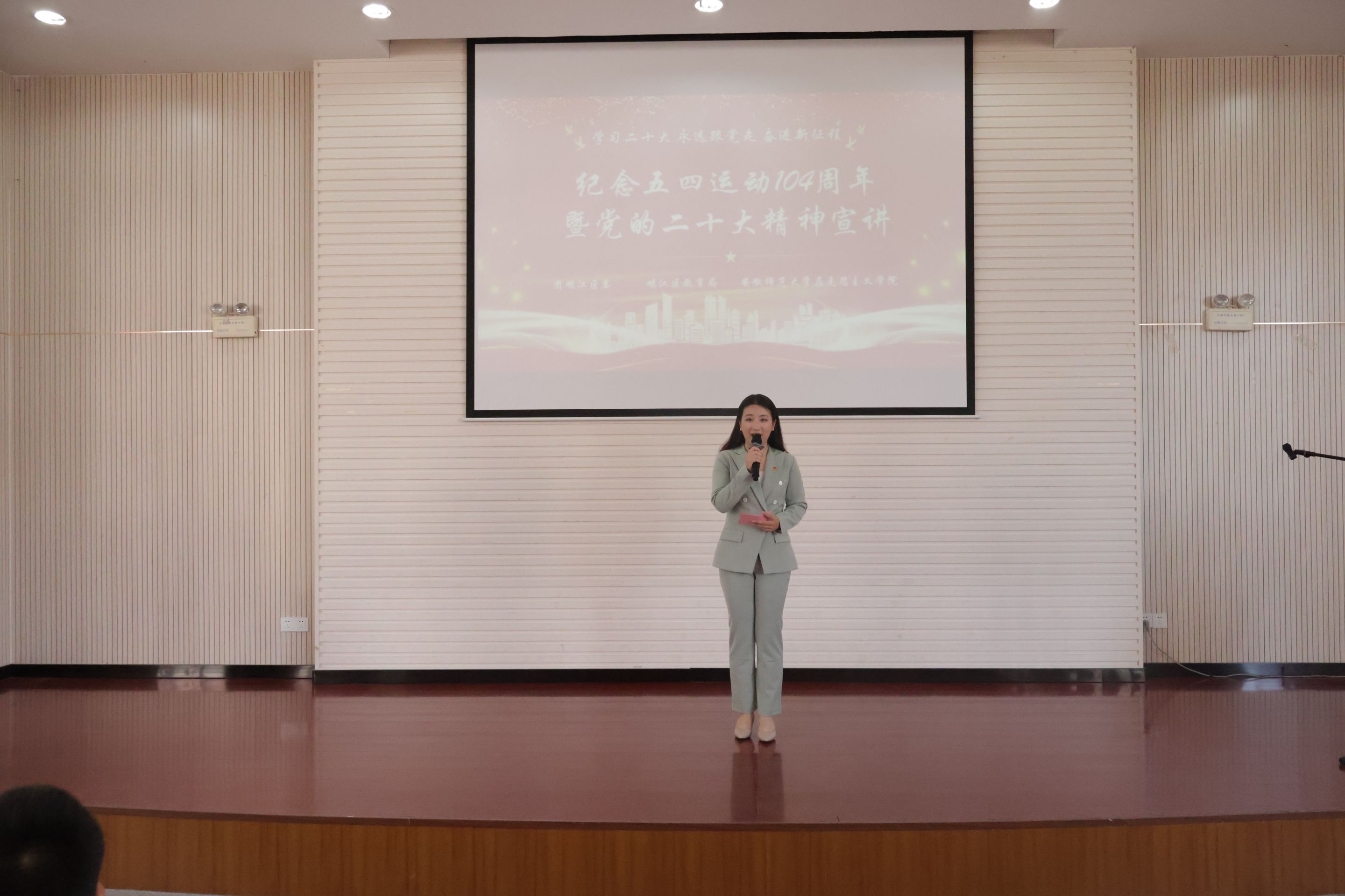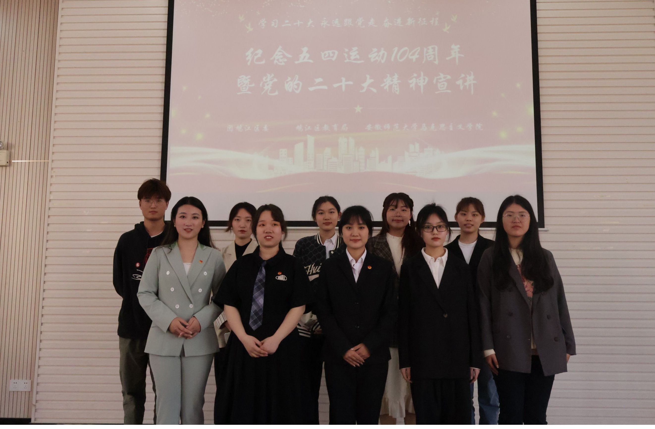 4月26日下午,“学习二十大·永远跟党走·奋进新征程”纪念五四运动104周年暨党的二十大精神宣讲进校园主题团日活动在芜湖市育才学校举行。