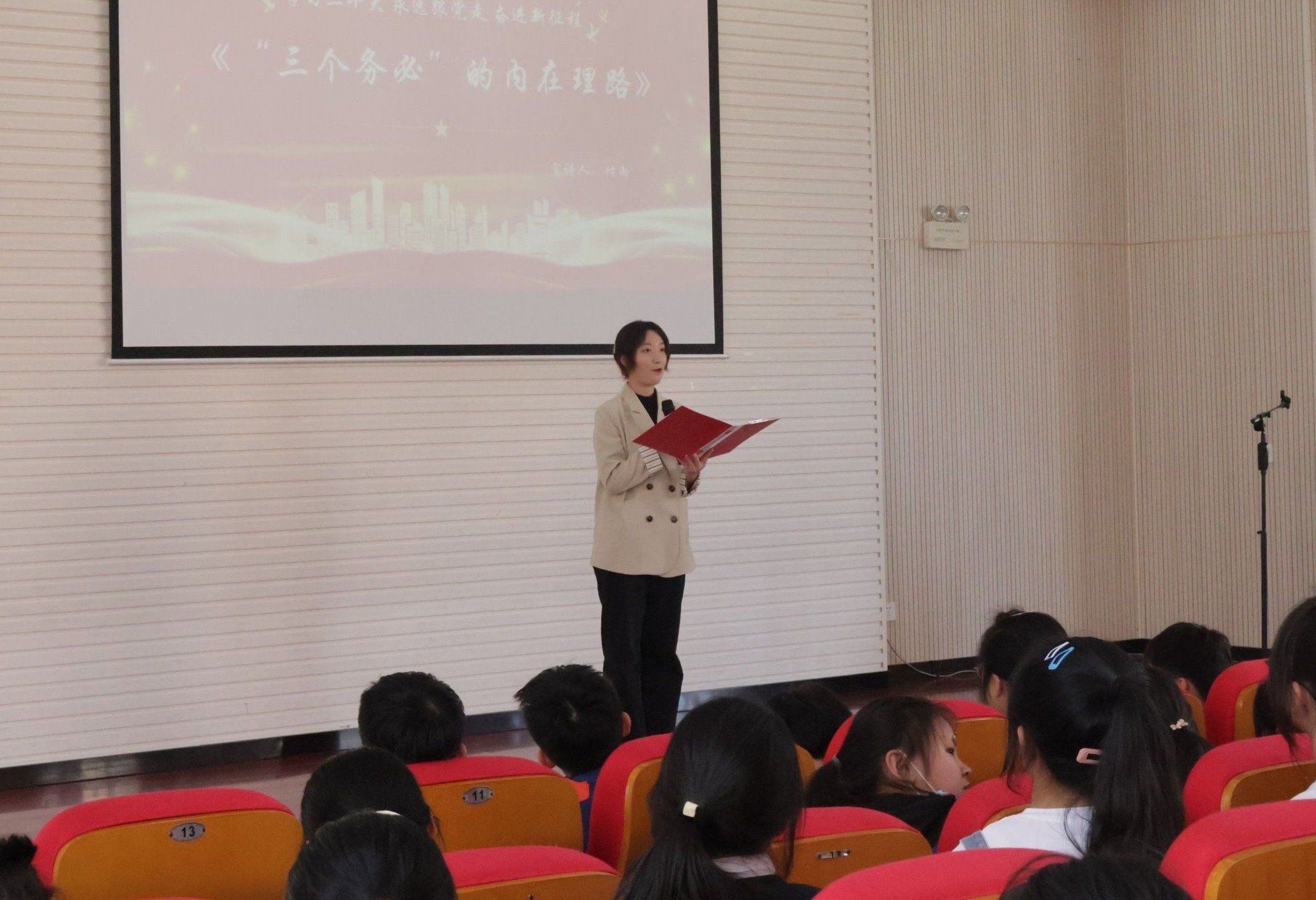 宣讲过程中还融入了情景朗诵《我在中国大地上报道》、歌曲《有我》等朗诵、曲艺形式,从而让青少年群体能坐得住、听得进、记得清。