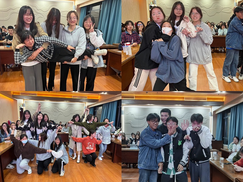 主题班会,营造良好氛围。“爱自己,从‘心’出发”。学院各班级分别召开心理健康主题班会。各班级通过为人物和表情包配音,根据照片摆姿势,用心语分享、观看视频、心理知识宣讲、写烦恼纸条等丰富多彩的形式呈现。主题班会的开展,有利于提高班级同学的心理健康知识水平和应对能力,增强大学生心理维护意识、提高他们面对挫折的能力。