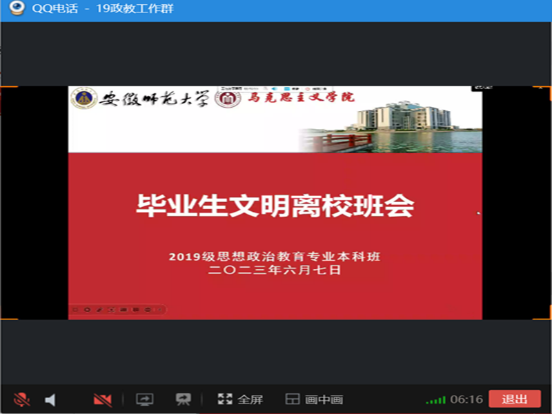 为做好2023届毕业生教育、管理和服务工作,确保毕业生离校工作的顺利开展,6月7日上午,永利集团304am2019级思想政治教育专业本科班线上召开了毕业生文明离校班会,班会由辅导员周楠主持。