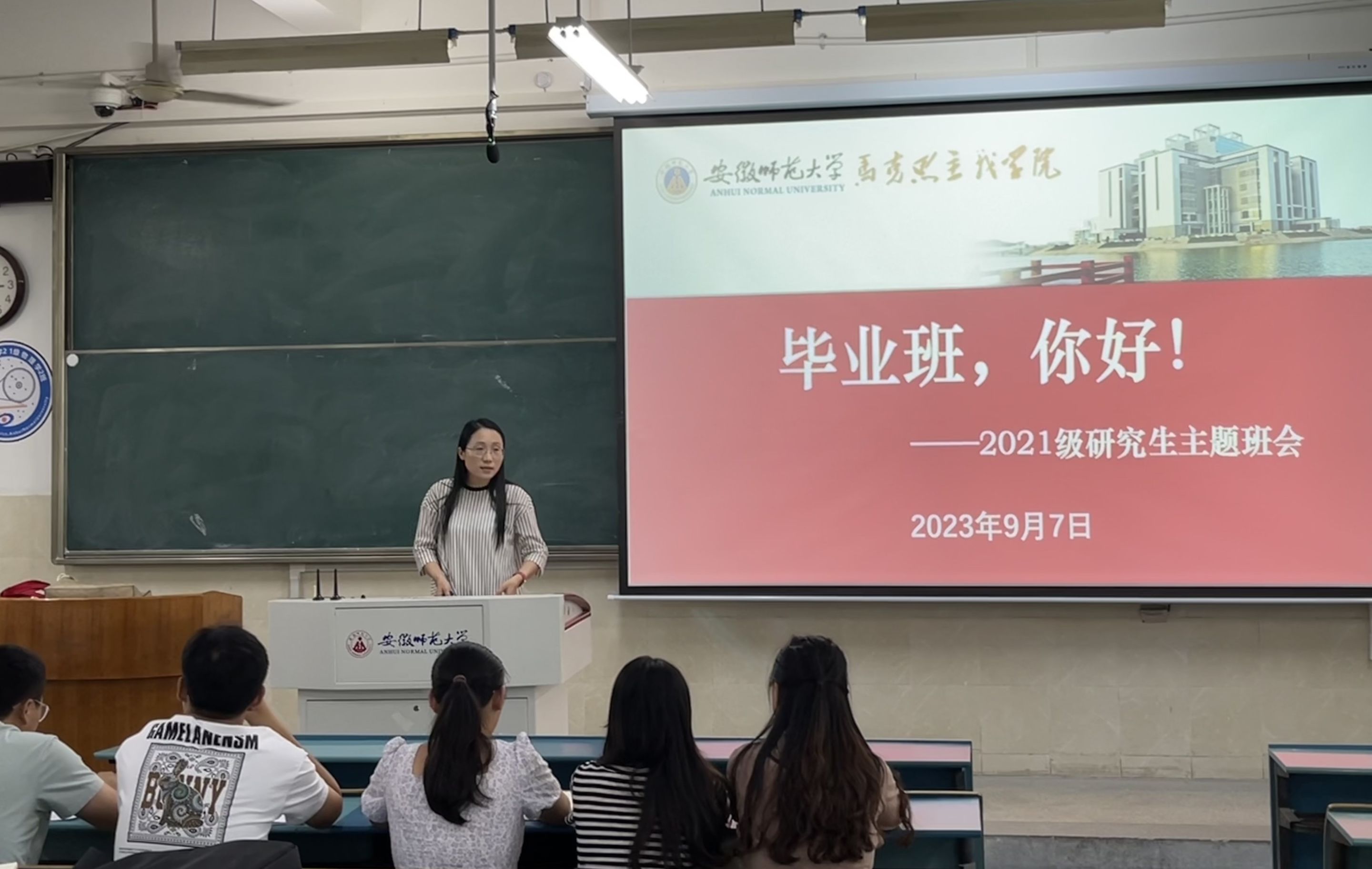 为引导毕业班学生尽快调整恢复学习状态,做好新学期个人规划,落实班级管理工作,9月7日下午,学院2024届硕士毕业生在行知楼2010106教室召开秋学期主题班会。本次班会由辅导员孙艳秋老师主持,2024届全体在校硕士生参加。