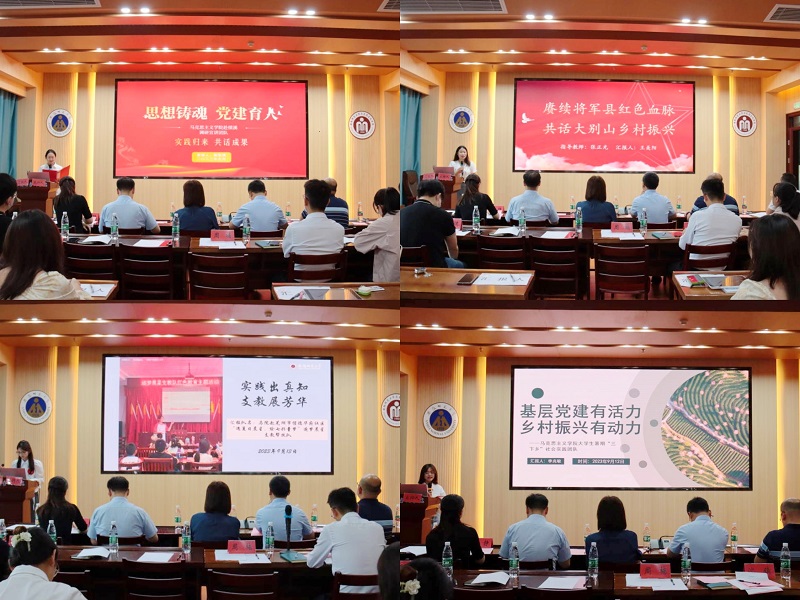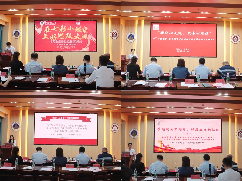 17支实践队根据抽签顺序,围绕理论宣讲、实践调研、教育帮扶等实践主题展开汇报。各实践团队汇报人通过精美的PPT,全面汇报了马院学子在党的最新政策宣讲、暑期七彩课堂、助力乡村振兴等方面取得的成效,一张张生动的实践图片、一篇篇丰富的实践纪实、一个个精彩的的实践视频,充分展示了各团队的实践成果,展现了马院学子致力于理论与实践结合的决心和向上向前向善的精神风貌。