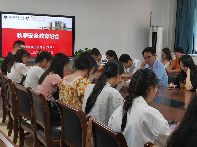 为进一步强化学生安全防范意识,提高学生风险防范能力,规范学生安全行为,9月19日下午,2022级学术型硕士研究生班在学院研究生党支部会议室召开了秋季安全教育班会。此次班会由辅导员周楠主持,班干部、全体寝室长参加。