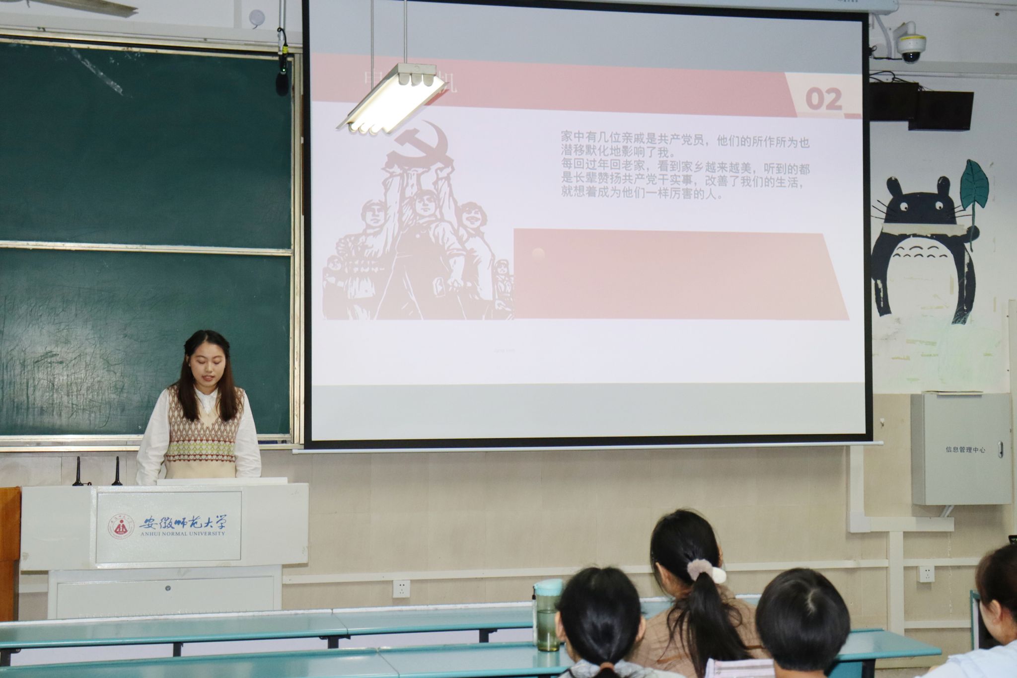 会上,季行健解读了入党积极分子推优评选的实施方案,明确了评选程序。祝淑君、张慧珍等6名同学按抽签次序依次上台,从思想建设、学习工作、生活实践等方面进行详细汇报。从对党的认识、入党动机、专业学习、社会实践、作用发挥等方面取得的成绩以及自身存在的不足以及努力方向等方面进行陈述,纷纷表达了渴望加入党组织的愿望。