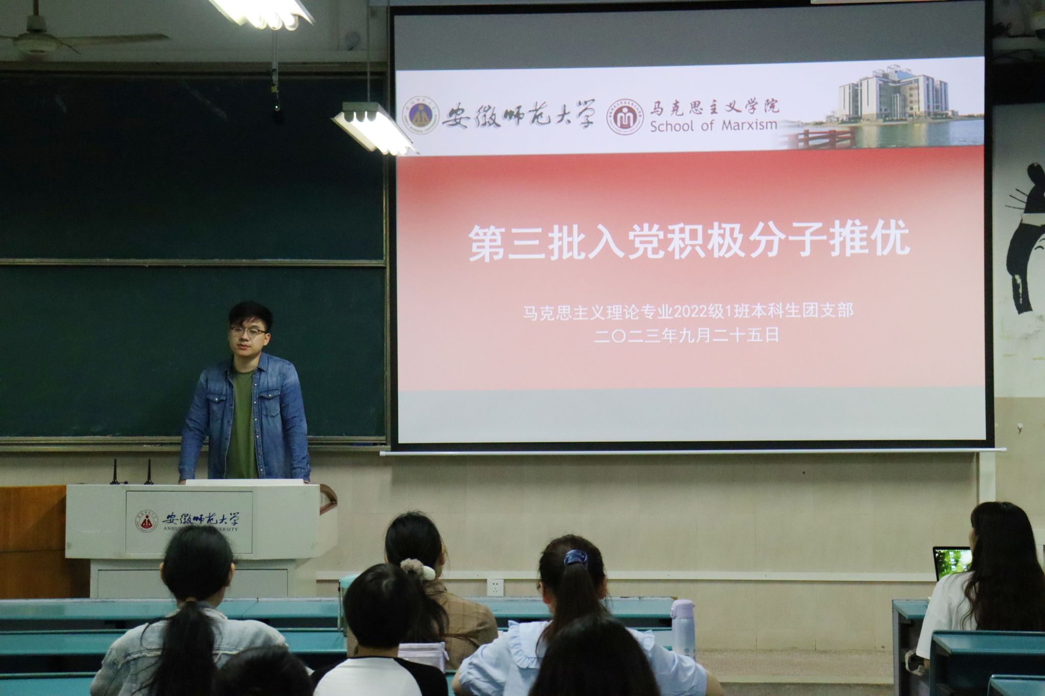 9月25日晚,2022级马克思主义理论一班团支部在行知楼2020303教室召开团支部第三批入党积极分子推优评选会。本次会议由辅导员季行健主持,2022级马克思主义理论一班全体同学参加。