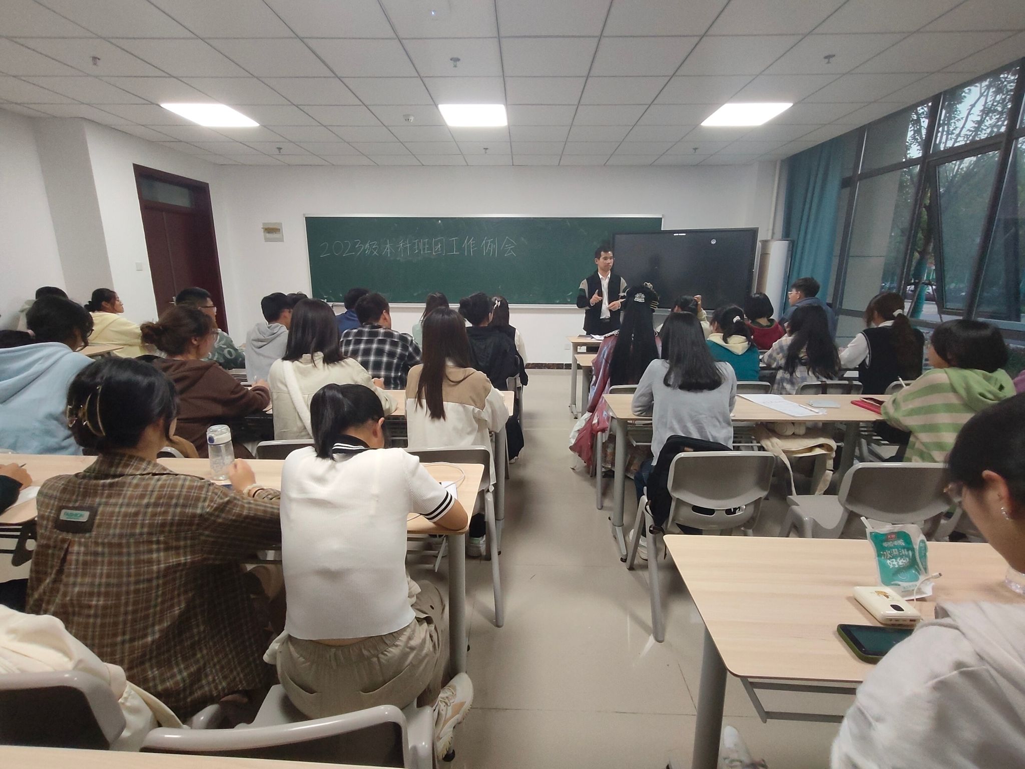 会上,王梦雨详细讲解了班团委的工作职责,要求班团委要加强自身能力建设,严格要求自己,摆正工作态度,坚决不碰“三条红线”,熟悉主要办公软件,充分发挥模范带头示范引领用。他还布置近期班团委的主要任务,进一步强调了每天上课前手机入袋率、上课纪律、晚自习出勤率和晚查寝等事项。他强调,为了提高同学们的师范生技能和上课状态,各班开始有序开展“课前三分钟”活动;为了提高班级凝聚力,助力学生全面发展,王梦雨建议班级可以组建不同的兴趣小组,开展丰富的班级活动。他要求,班团委要敢做作为,主动作为,既要严格要求同学又要和谐凝聚班级。