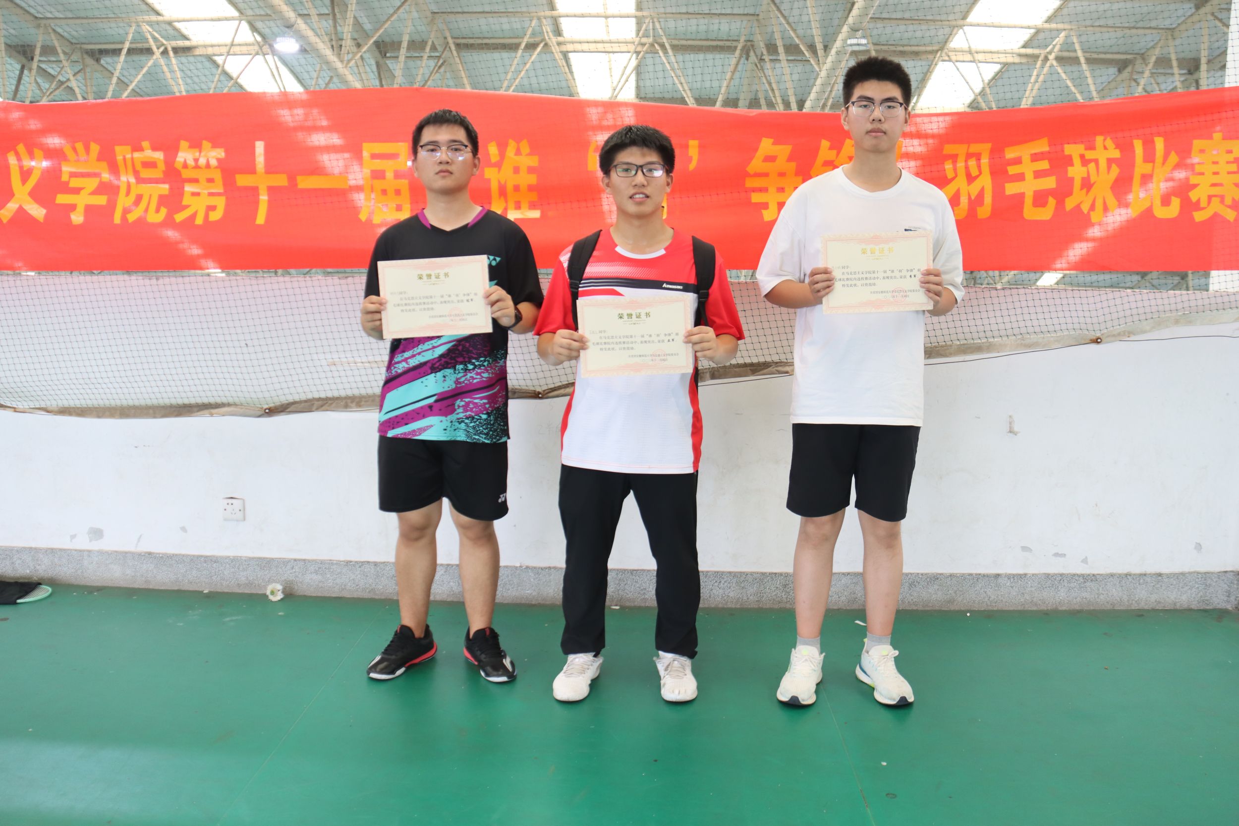 本次比赛分预赛、半决赛和决赛三轮进行,含男子单打和女子单打两个项目。经过初赛,共56名学生入选院级比赛。赛场上,大家劲头十足,将个人球技展现的淋漓尽致,比赛进入最激烈的阶段,羽毛球像闪电破空,让人目不暇接,引起现场观众的欢呼。最终,经过4个小时的激烈角逐,谢成可获得男子单打冠军、吴逸尘获得亚军、周于皓获得季军,陈卓青获得女子单打冠军、熊君艳获得亚军、蒲少华获得季军。