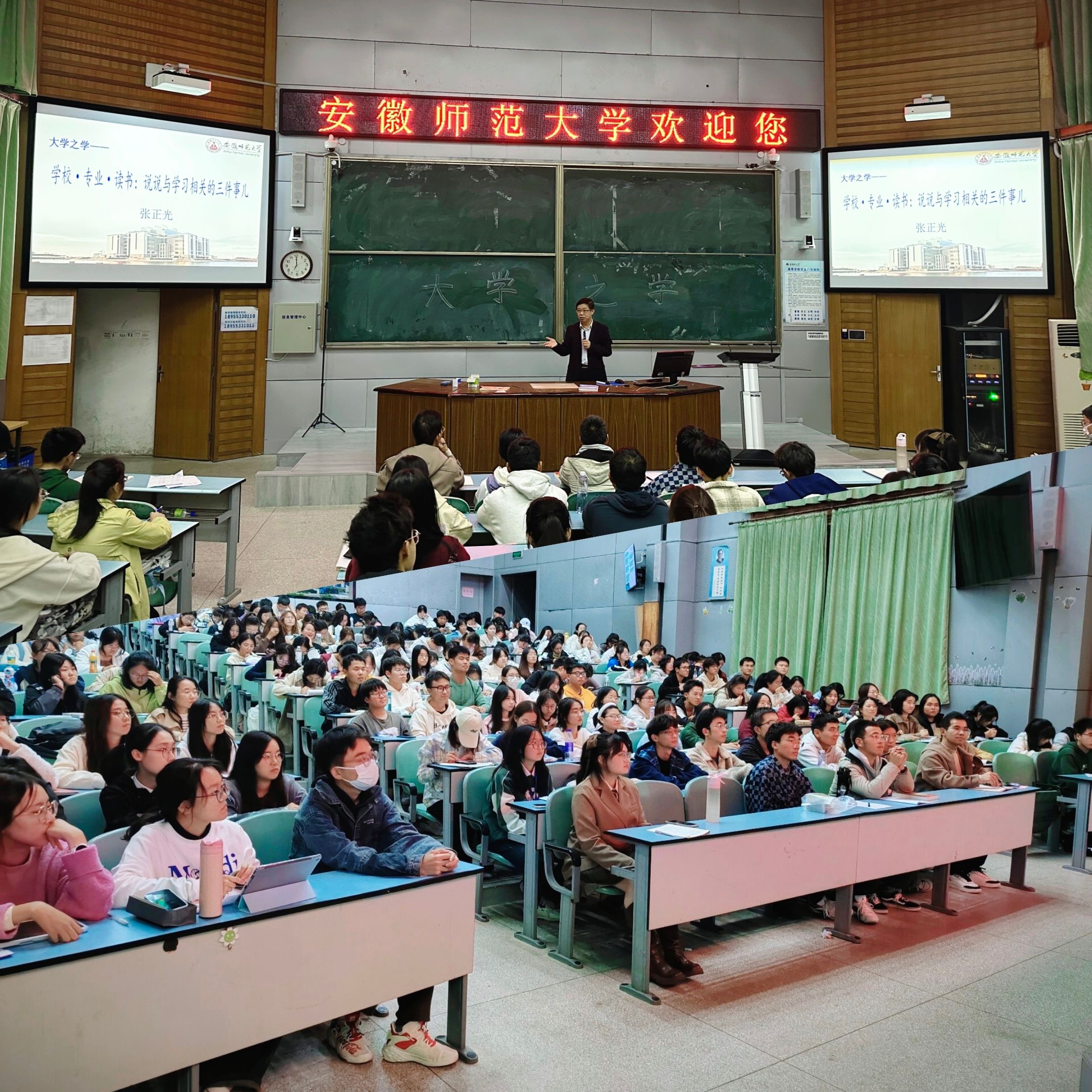本次讲座张正光从“关于大学的传说”、“关于专业那些事儿”、“关于读书的一点认识”三个方面进行探讨,强调大学要注重学习能力的培养,学有专长,养成独立思考能力。首先,他以生动鲜活的例证破除了同学们对大学学习的传统误区,引用梅贻琦的经典语录向同学们阐述大学的定义,并解答“我们为什么上大学”这一发人深省的问题。随后,张正光指出大学会读书、读好书的重要性,建议大家多去图书馆,并推荐了“挑、看、察、记、研、思、融、读”八种读书方式,要切忌功利性、碎片化、快餐式读书,真正做到学有所长、明智修身。最后,张正光老师激励同学们坚定理想信念,踔厉奋发,笃行不怠,在大学美好生活中造就最美的自我。提问环节,同学们积极提出疑问,张正光老师耐心解答,现场掌声连连。
