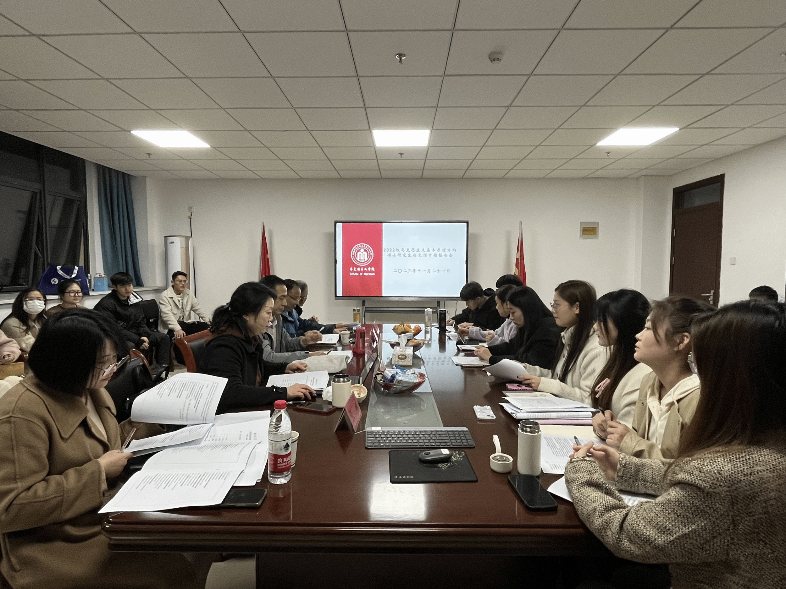 2023年11月21日晚上19:00学院2022级马克思主义基本原理专业第二组硕士在学院四楼G407会议室举行了学位论文预开题报告会。戴兆国教授担任第二组审核组组长,胡梅叶副教授、方敏副教授、季爱民副教授、张娥副教授等导师组老师参会指导。陈山美、余果、刘纪欣、胡琦、李科萱、朱婉莹、王茜、余高洁等研究生进行汇报,本学位点2023级研究生全程观摩学习。