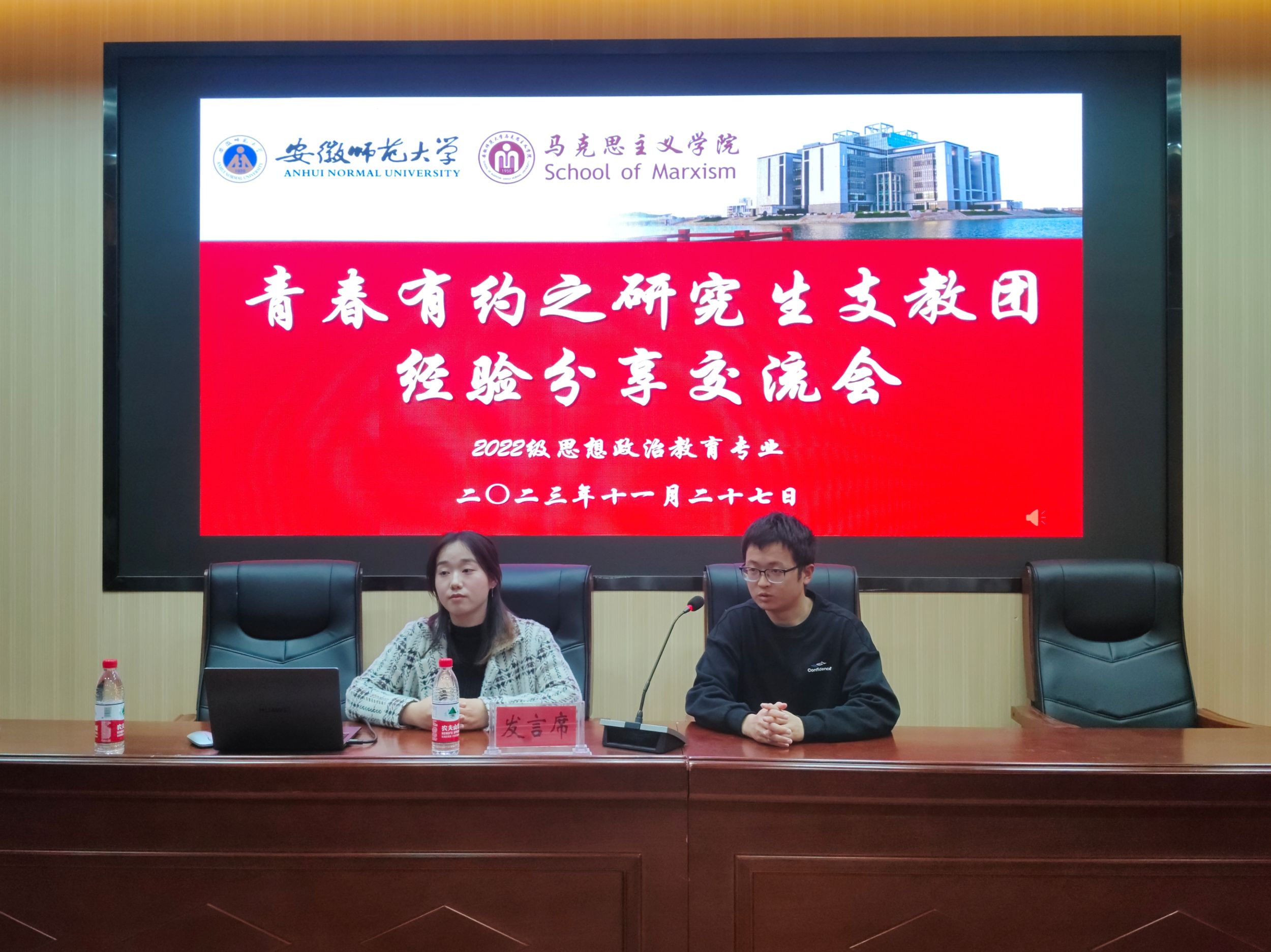 11月27日晚,2022级思想政治教育(师范)专业在学院G108会议室开展“一站式”学生社区青春有约之研究生支教团经验分享交流会,会议由团支书倪名明主持,全体同学参加。