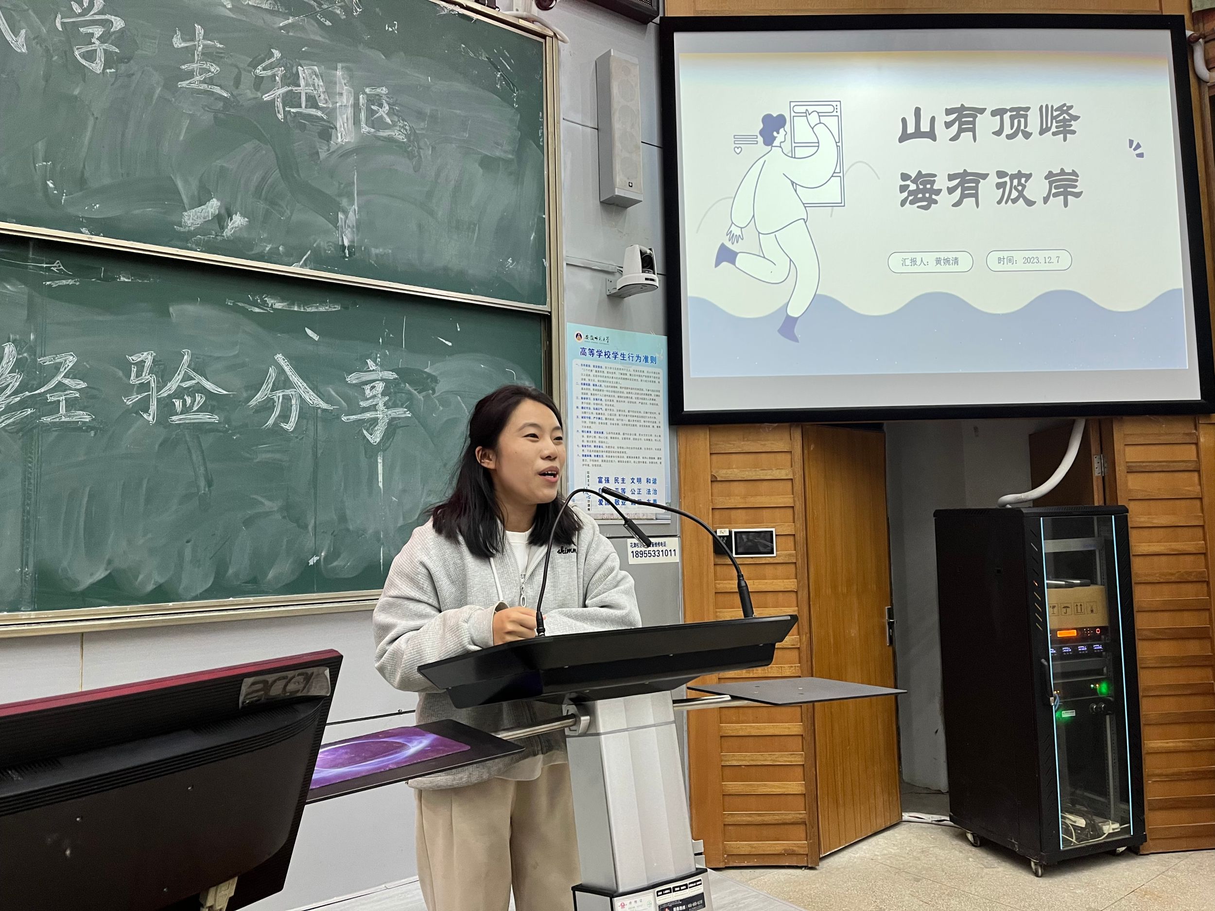 12月8日晚,2022级思想政治教育专业于行知楼2010105教室开展“一站式”学生社区青春有约之榜样先锋经验分享会,2021级本科生骆鹏晟、黄婉清应邀主讲,会议由蒲少华主持,全体同学参加。