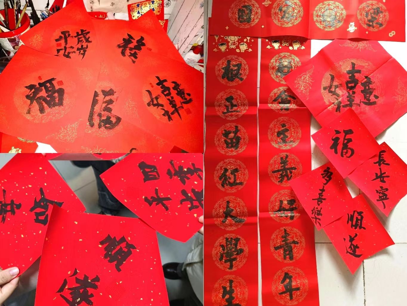 12月27日,2022级思想政治教育专业思政委员刘琪为班级各寝室送上手写春联,表达新年祝福,受到了同学们的一致称赞。刘琪用自己的笔墨在一张张绯红的纸上一笔一划地写下了对新年的期盼和祝福。“术业宜从勤学起,韶华不为少年留”“春来百花香满地,时来万事喜盈门”,一幅幅对联或妙言要道或诗意盎然,字里行间都承载着刘琪对同学们的衷心祝福。