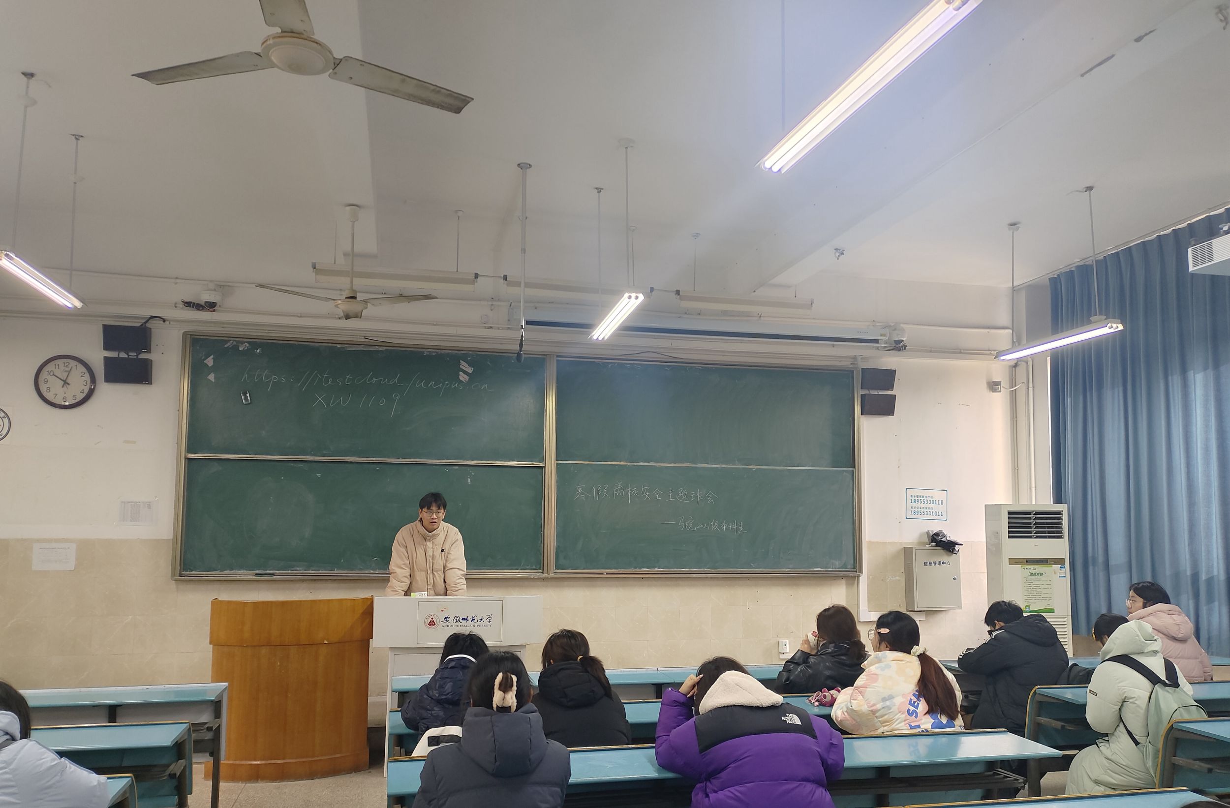 为提高同学们的安全防范意识与能力,保障学生能度过一个安全、平安、祥和的春节和寒假,1月4日至1月5日,学院2021级本科生在行知楼2010301教室召开寒假离校安全主题班会。会议由辅导员沈镇主持,2021级全体本科生参加。
