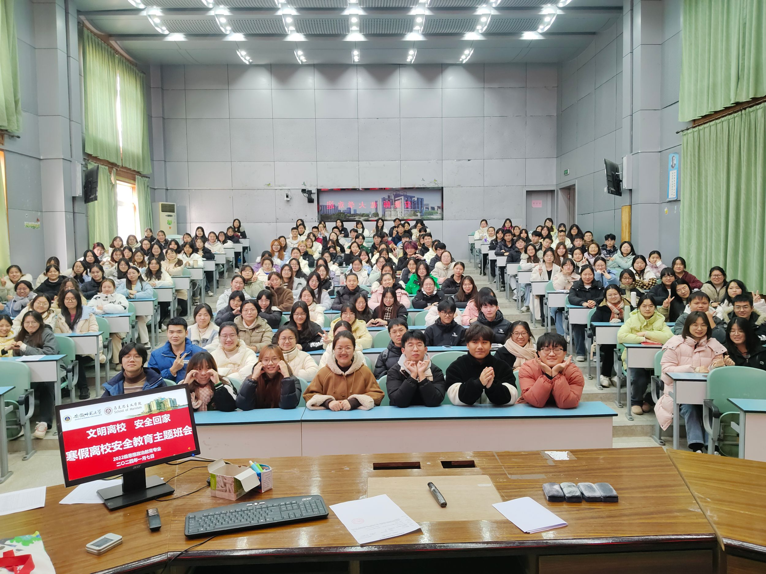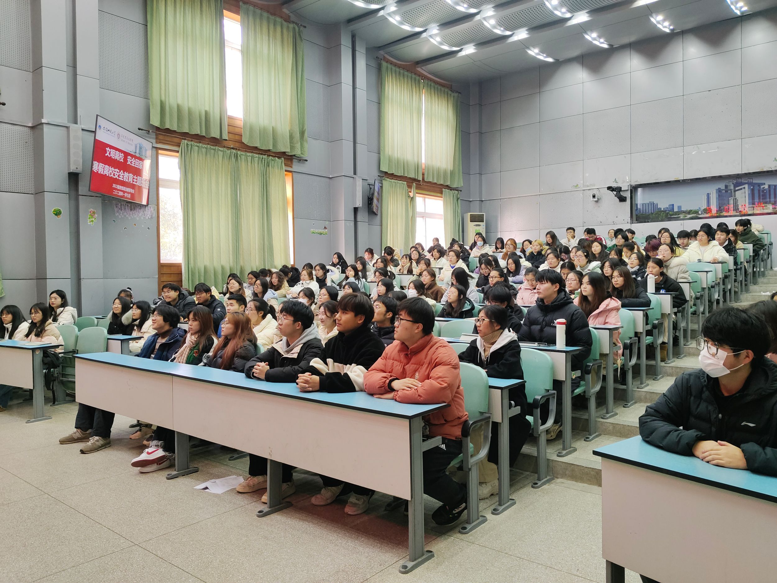 会议伊始,陶娴静详细说明了放假的时间安排,传达了学校关于学生离校前及寒假期间安全教育要求,从防火、防盗、防溺水等安全事项,提醒同学们要遵守交通规则,合理安排作息时间。同时,她还提醒大家注意个人财物安全,不要轻易将贵重物品放置在公共场所。陶娴静再次通过实际案例向同学们介绍了常见的诈骗手段,如假冒身份、虚假信息等,并提醒同学们提高警惕,不轻信陌生人的话,遇到可疑情况要及时报警或与家人、辅导员联系。会后,她呼吁同学们在离校前进行一次全面的卫生大扫除,并将宿舍内的物品整理归档,以防止损坏或遗失。