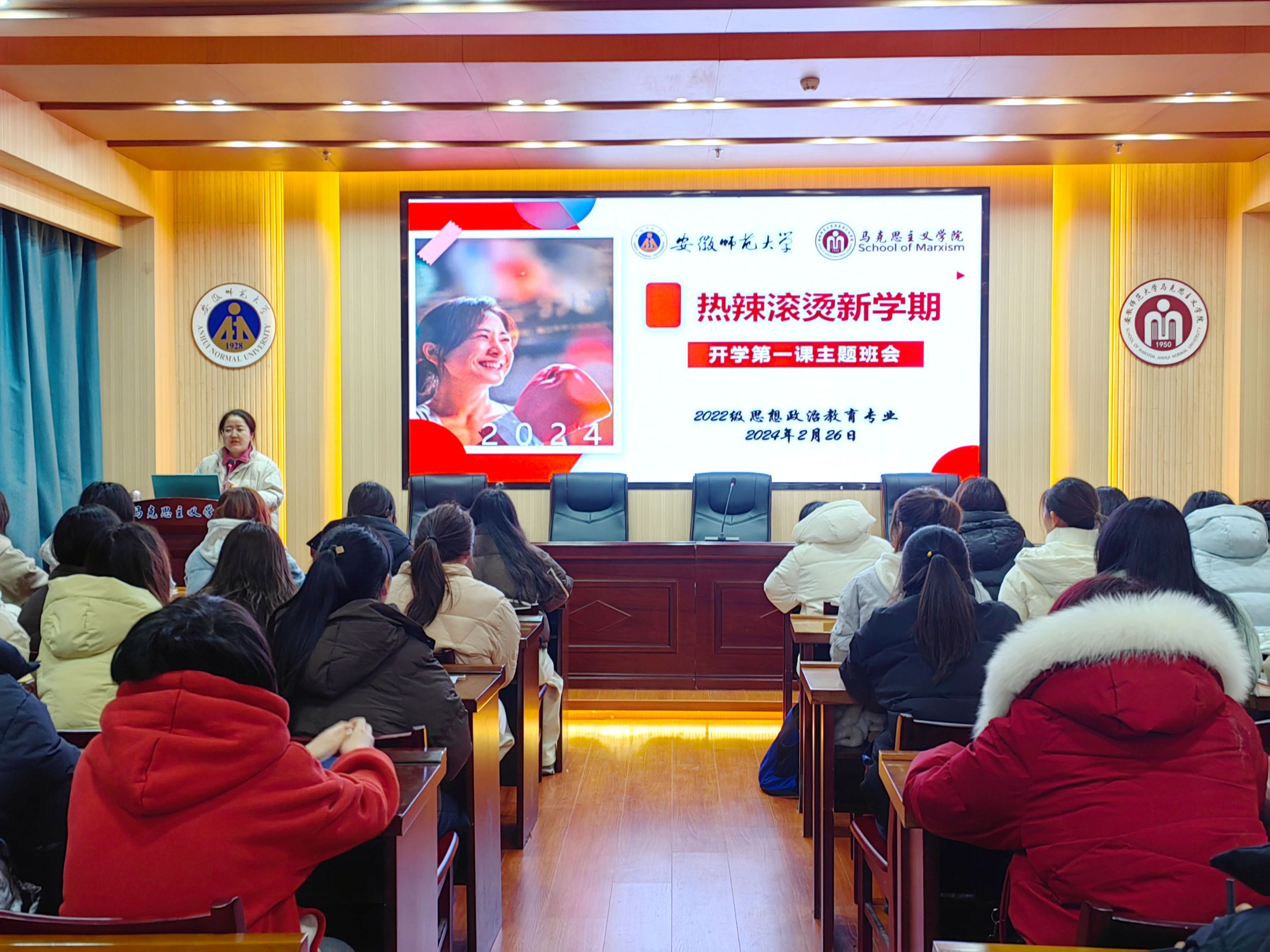 2月26日晚,2022级思想政治教育专业在文典楼G108会议室召开春季学期开学第一课主题班会,会议由辅导员陶娴静主持,全体同学参加。