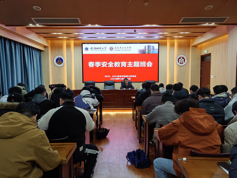 2月29日晚上,2022、2023级学术型硕士研究生班在学院一楼报告厅召开春季安全教育主题班会。会议由辅导员周楠主讲,班级同学参加。