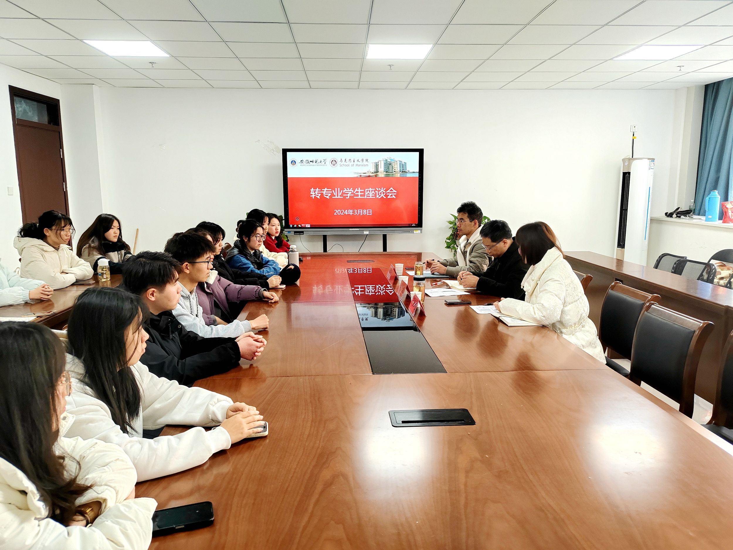 为了深入了解转专业同学的学习和生活情况,帮助同学们更好地适应新专业,加强学风建设,3月8日下午,永利集团304am在学院行政楼二楼211会议室召开2023级转专业学生座谈会。院党委副书记刘玉艳和专业课教学副院长赵冰参加了本次座谈会,会议由2023级本科生辅导员王梦雨主持。