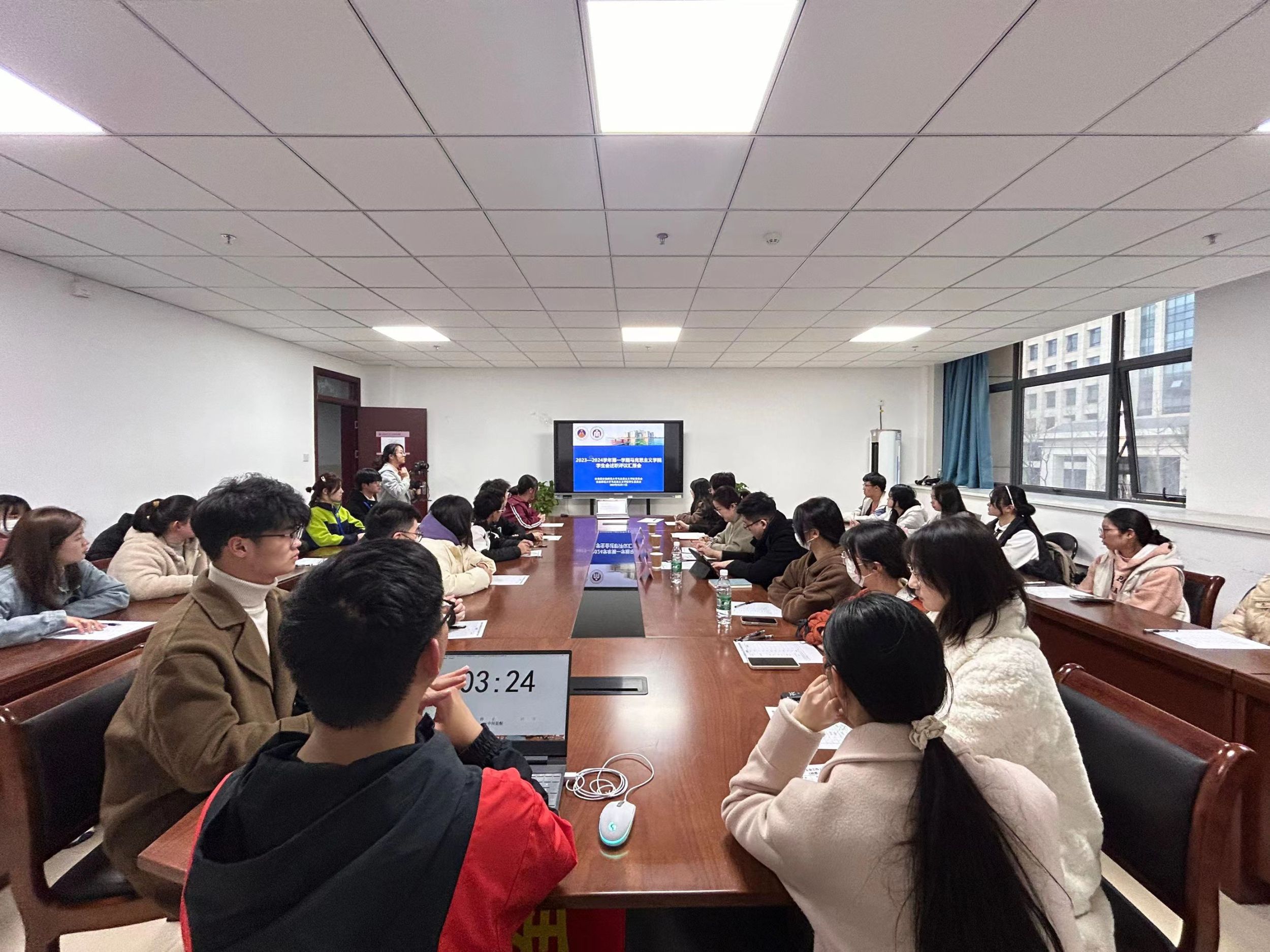 为更好推进本学期工作开展,3月17日下午,永利集团304am召开2023-2024学年第一学期学生会工作人员述职评议会。学院团委书记陶娴静、团委副书记季行健、校学生会主席团成员刘赜玮及全体学生代表参加会议。