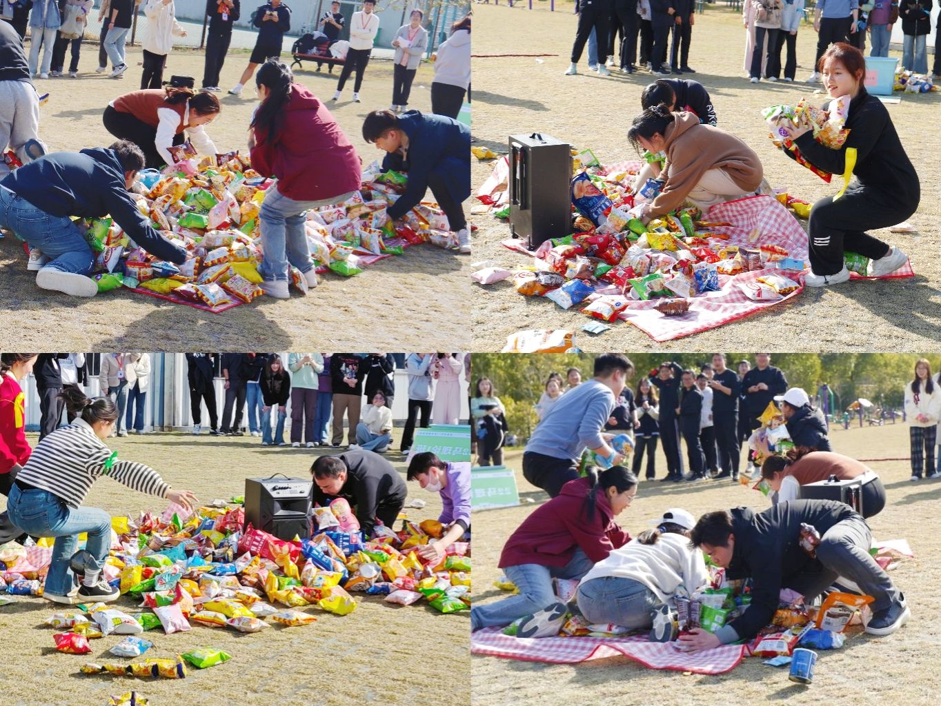 活动以“零食大作战”拉开帷幕,带队老师怀着“我的学生我来宠”的必胜信念,蜂拥而上,在规定的背景音乐内为同学们“抢”到最多的零食。“老师,您也太宠我们了吧”“太幸福了”欢声笑语交织在一起。