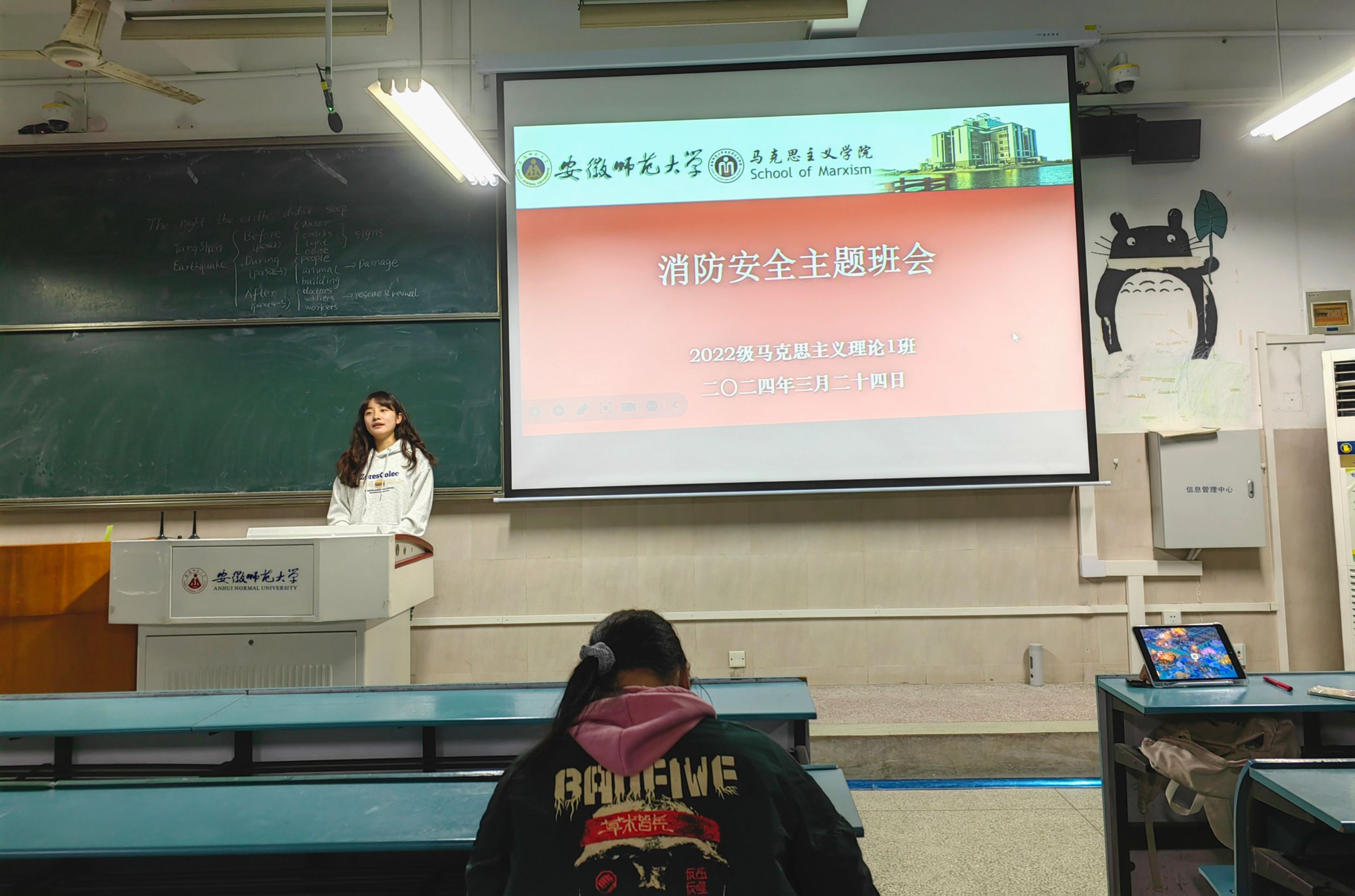 为全面提升学校消防管理和教育工作水平,营造安全、稳定、和谐的校园环境,切实提高广大师生的消防安全意识,3月24日晚,2022级马克思主义理论1班于行知楼2号楼303教室举行消防安全主题班会。会议由班长陶雨洁主持,班级全体同学参加。