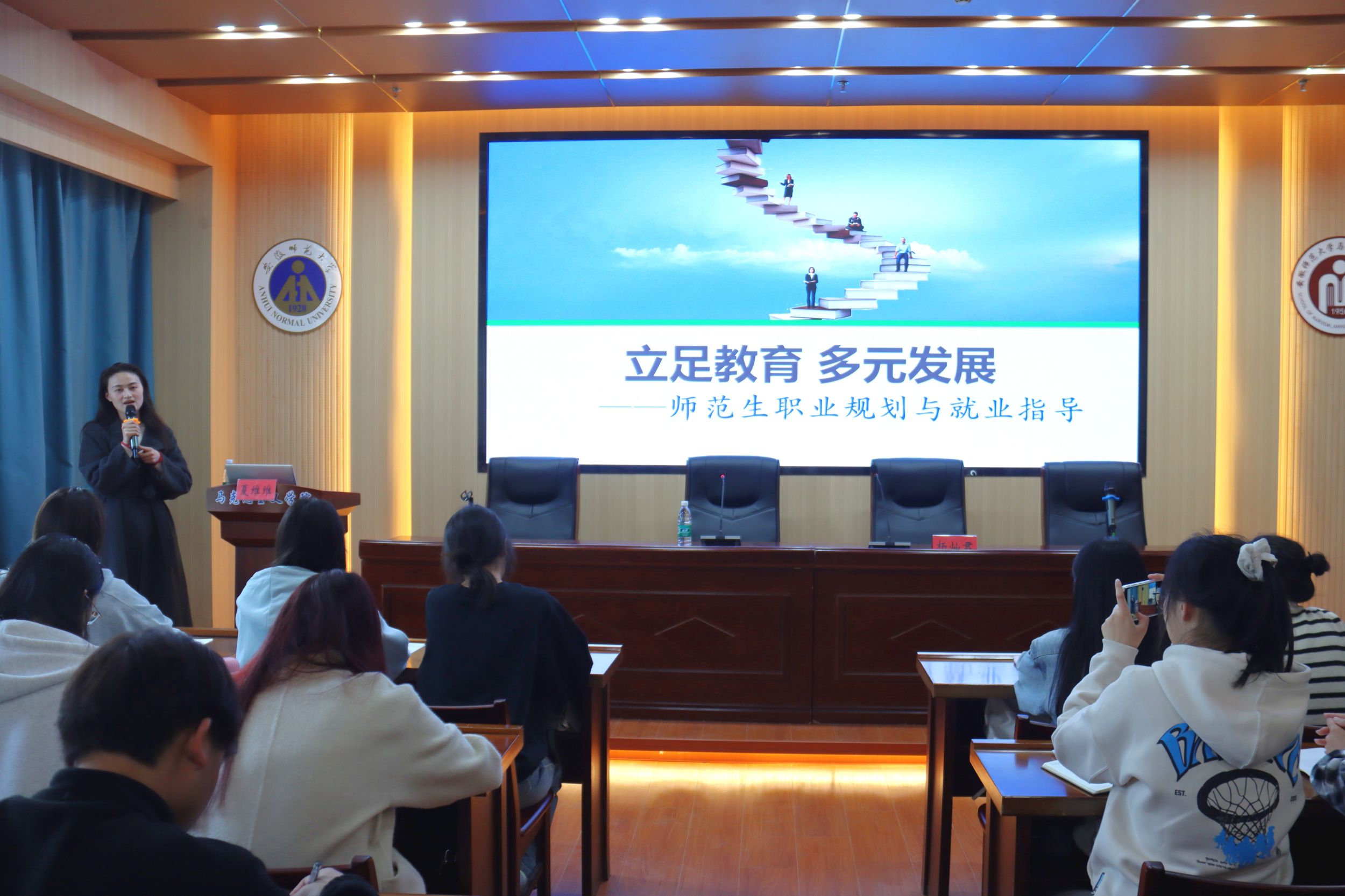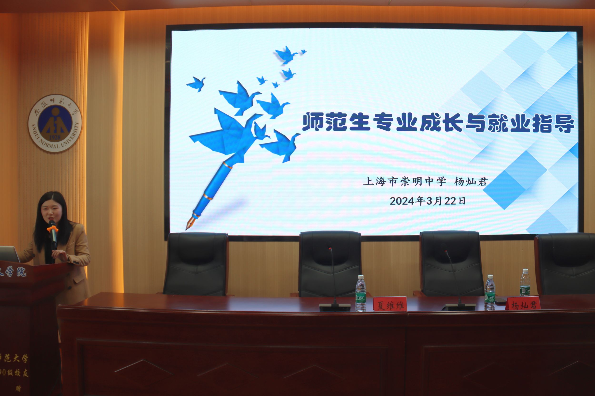 会上,杨灿君分别从师范生就业前景、就业渠道、职业发展与个人发展三个方面进行经验分享,重点介绍了求职过程中的注意事项,同时鼓励大家“在人生的每一个阶段做最好的自己”。