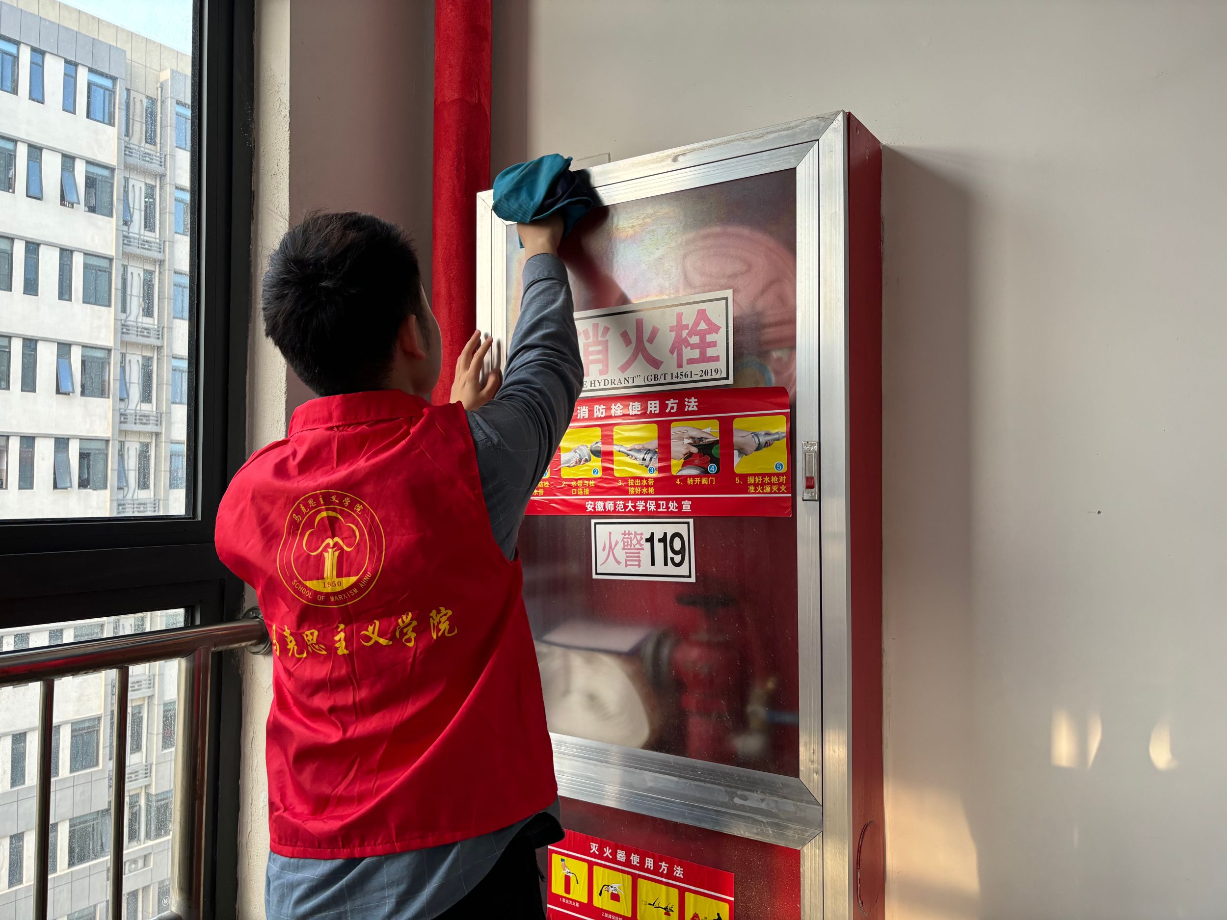 3月25日,团支部书记洪星宇、文体委员陈靓雨利用晚间休息时间,开展“学雷锋”主题团日活动之“雷锋”进寝室,组织带领全体同学打扫寝室公共区域,鼓励大家积极践行雷锋精神。同学们从走廊到寝室、从过道到阳台,打扫的一丝不苟、细致认真。经过大家的努力,原本肮脏的走廊变得一尘不染,原本积灰的扶手变得光滑明亮,做到了让整洁进寝室、让温暖进寝室、让文明进寝室,在劳动实践中传承了雷锋精神。