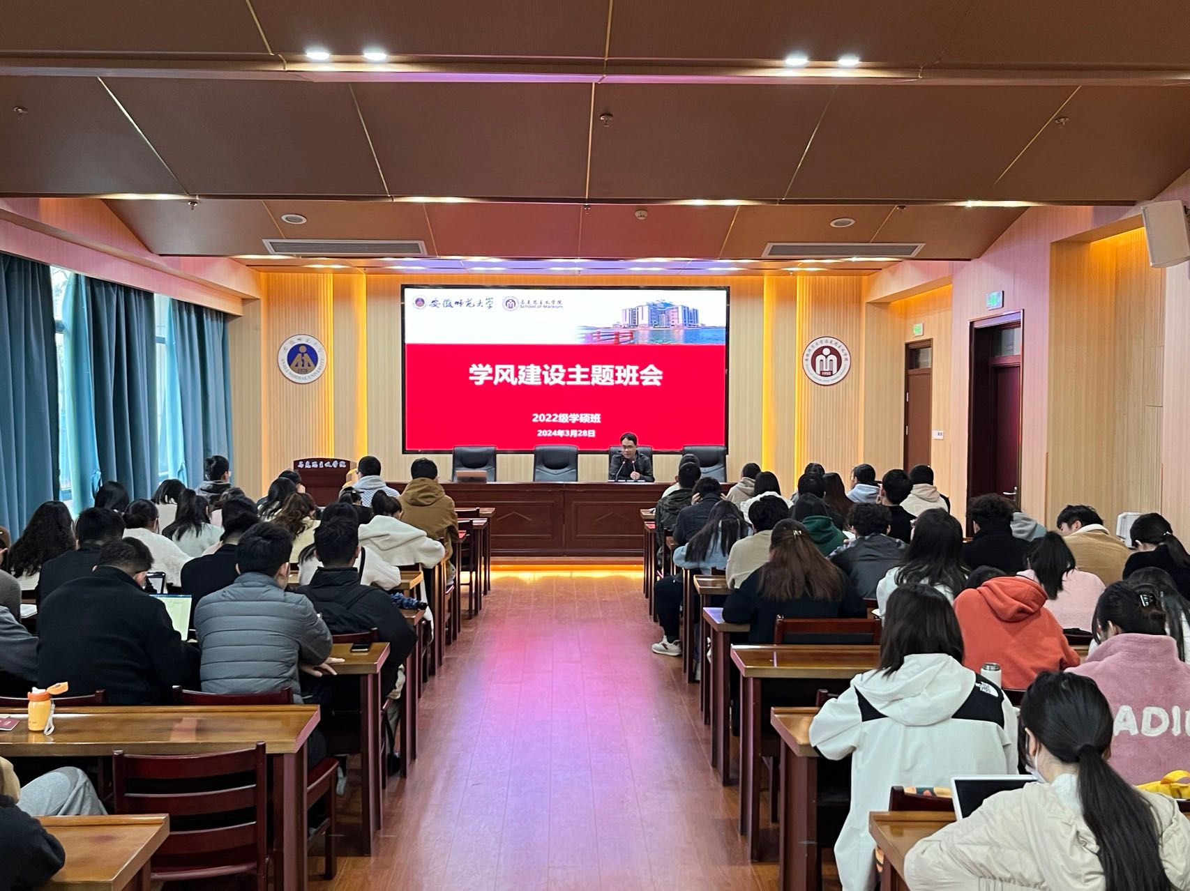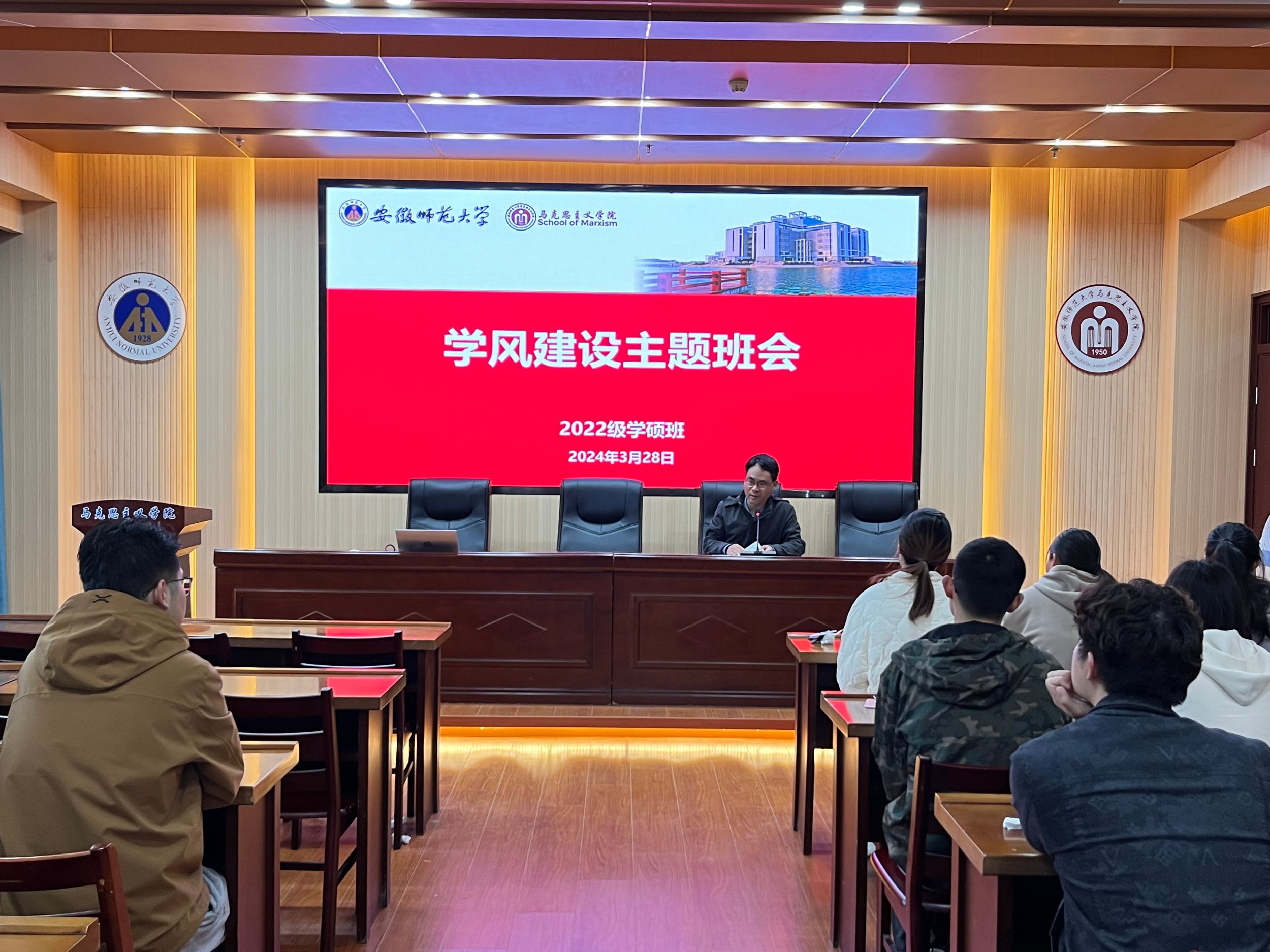 为加强研究生学风建设和科研作风建设,3月28日上午,2022级学硕班在文典楼G108报告厅召开学风建设主题班会,班会由辅导员周楠主讲,2022级学硕研究生参加。