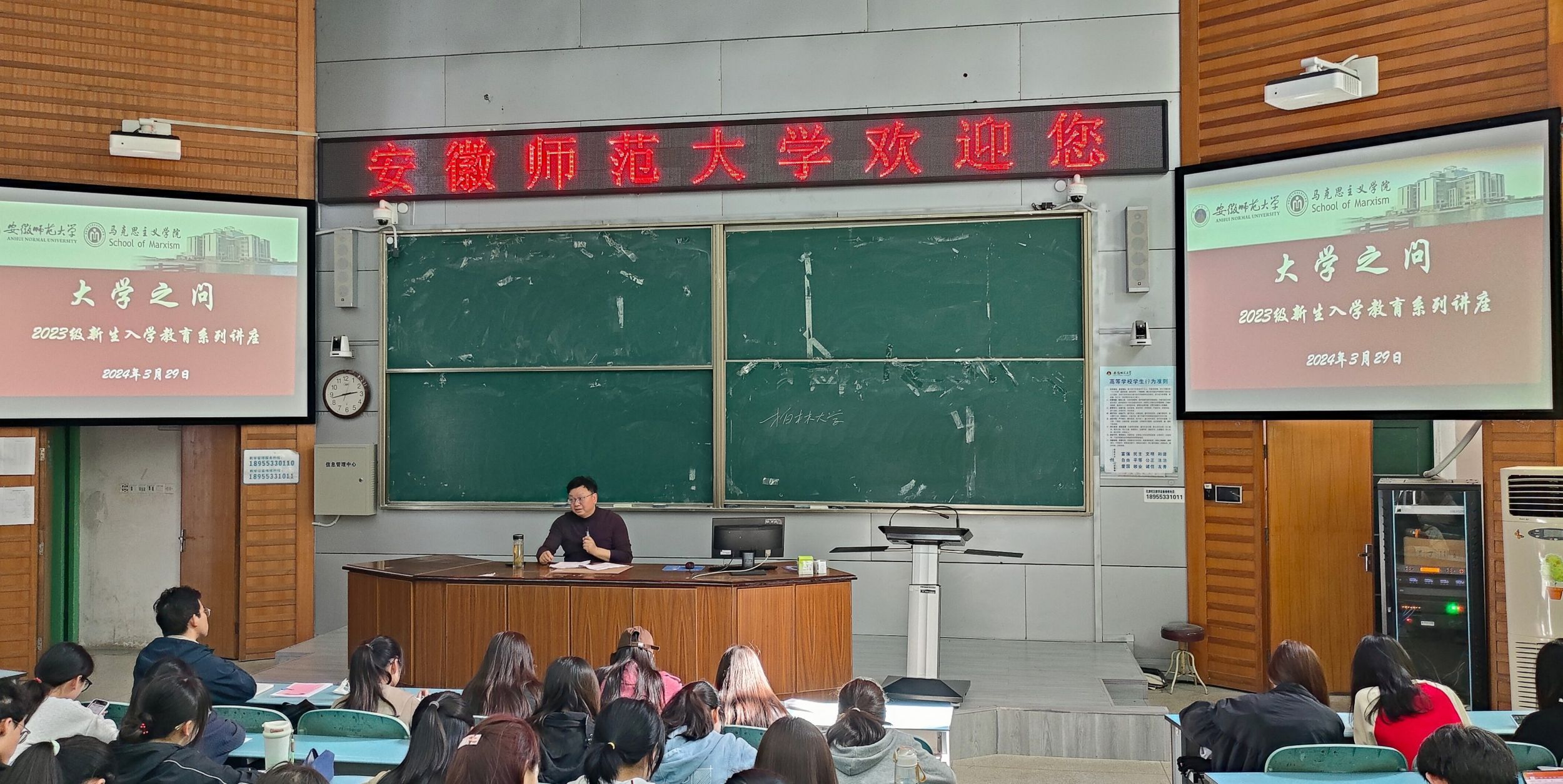为帮助大学生更好地规划大学生活,3月29日下午,永利集团304am在行知楼2010105教室举行新生入学教育大学之路系列讲座之“大学之问”。本次讲座由永利集团304am余在海教授主讲,2023级本科生辅导员王梦雨主持,2023级全体新生参加。