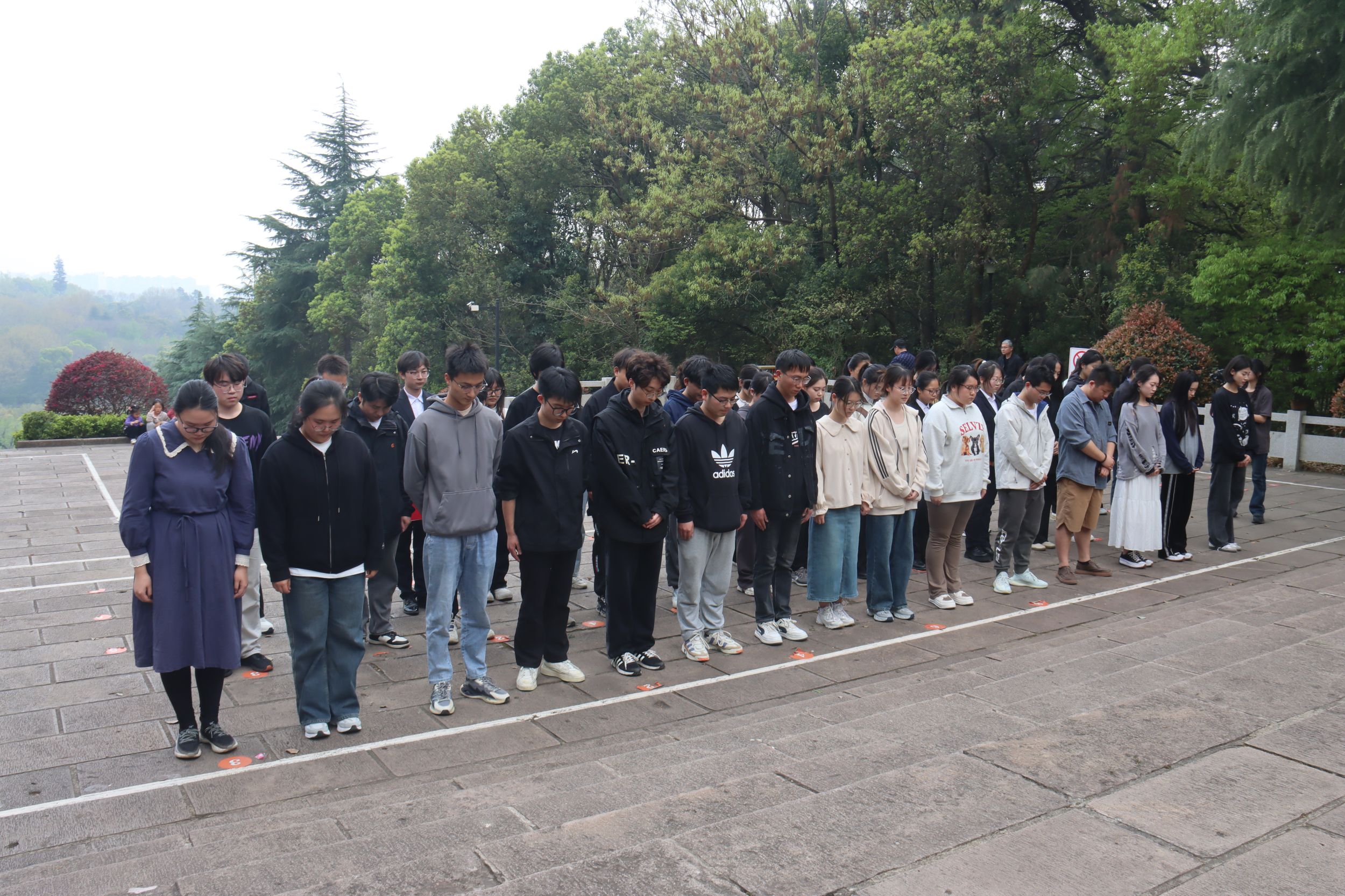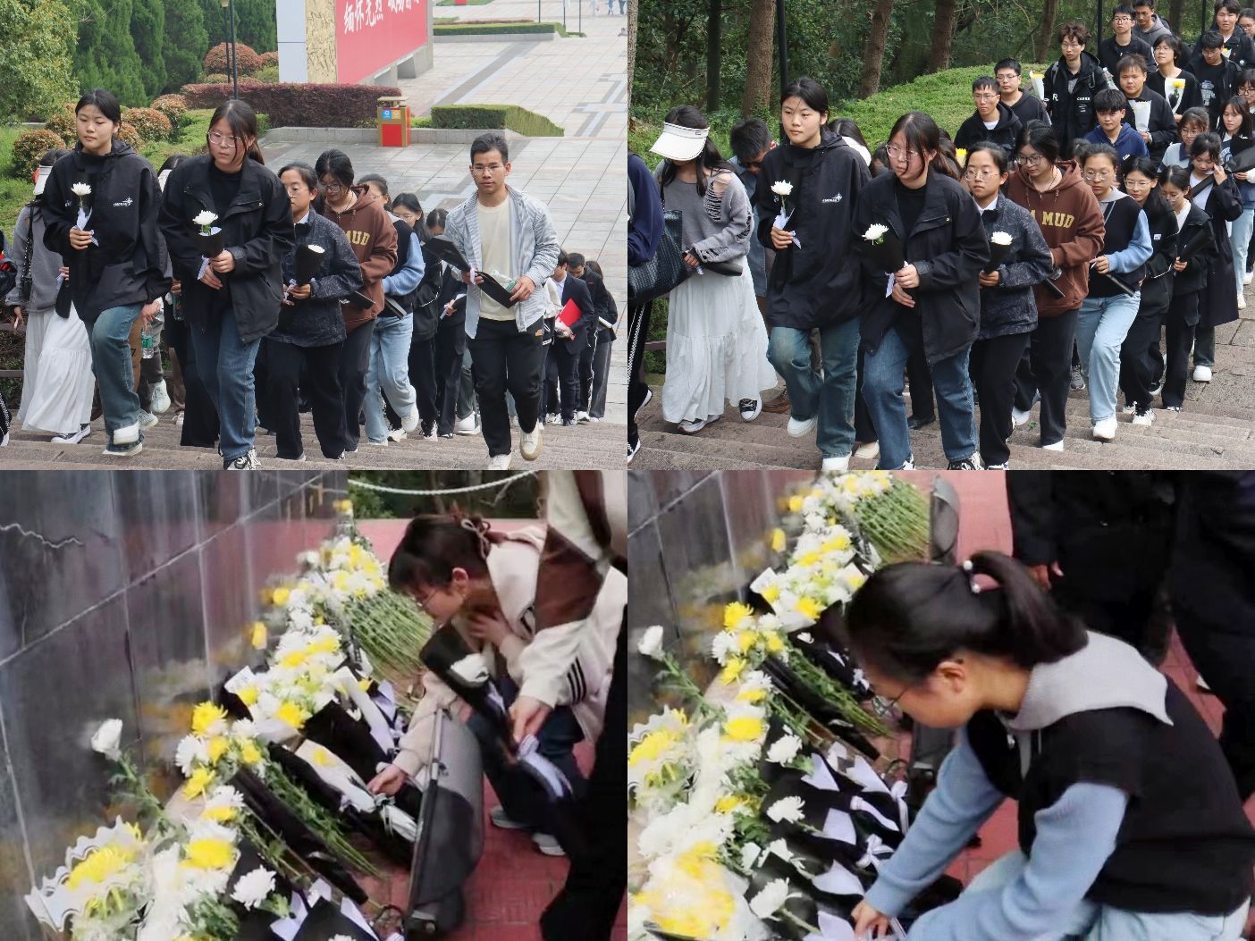 全校师生在烈士纪念碑前整齐列队,肃立默哀。师生们向革命烈士献花,寄托着对英烈们的无尽哀思,深切缅怀革命先烈的丰功伟绩。