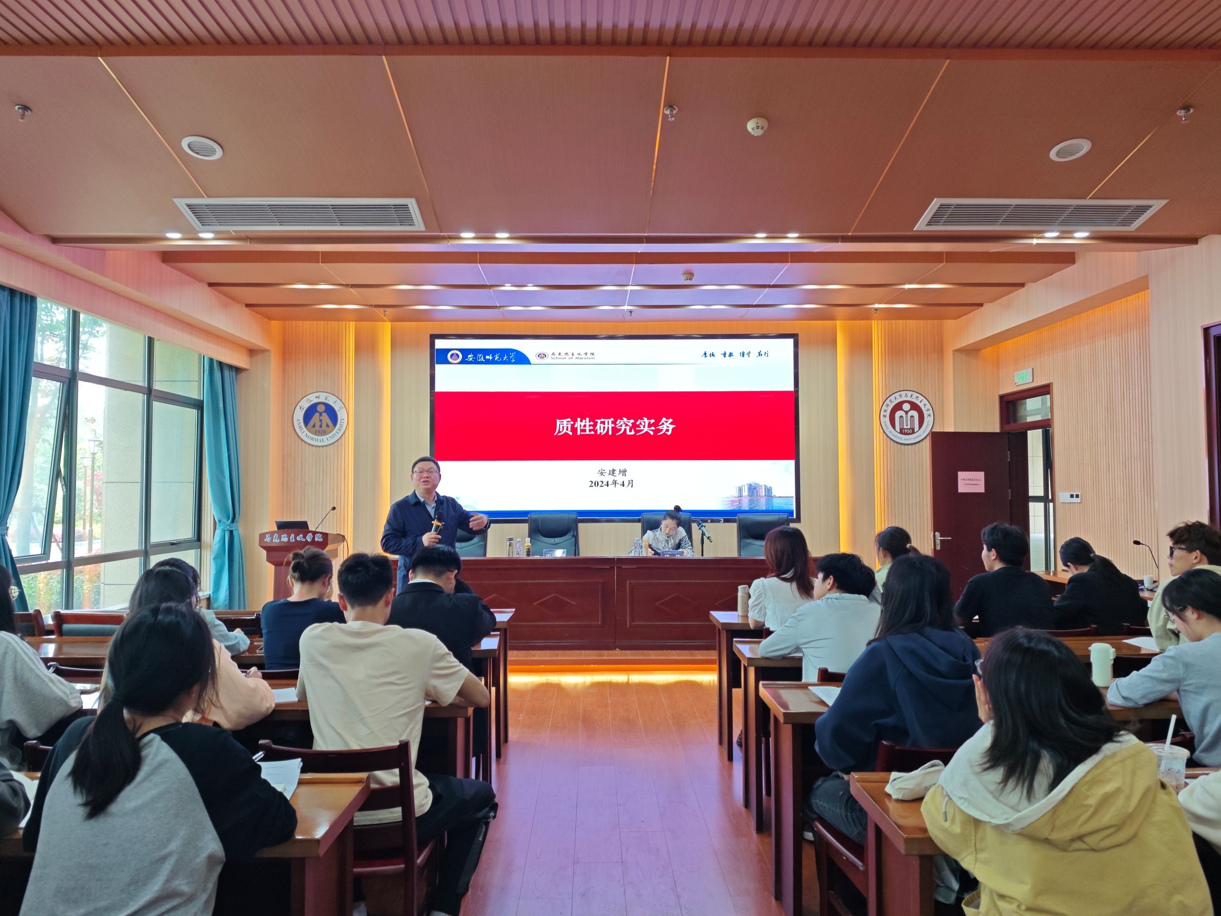 会上,安建增围绕质性研究的九个纬度、四类理念、五种方法,深入且生动地为同学们呈现了一场实务讲授盛宴。在质性研究的方法上,安建增指出,研究需要论证,论证需要资料。同时,他强调提升和归纳是质性研究过程的核心理念,实践调查的灵魂在于实时追问、及时追问以及精准追问。在开展社会调研中要时刻注重归纳与总结,形成对社会实务本质的记忆与理解。最后,安建增通过论文研讨的形式,现场解析案例分析法和扎根理论法的实际应用,为同学们处理、分析社会调查资料提供了知识积累。