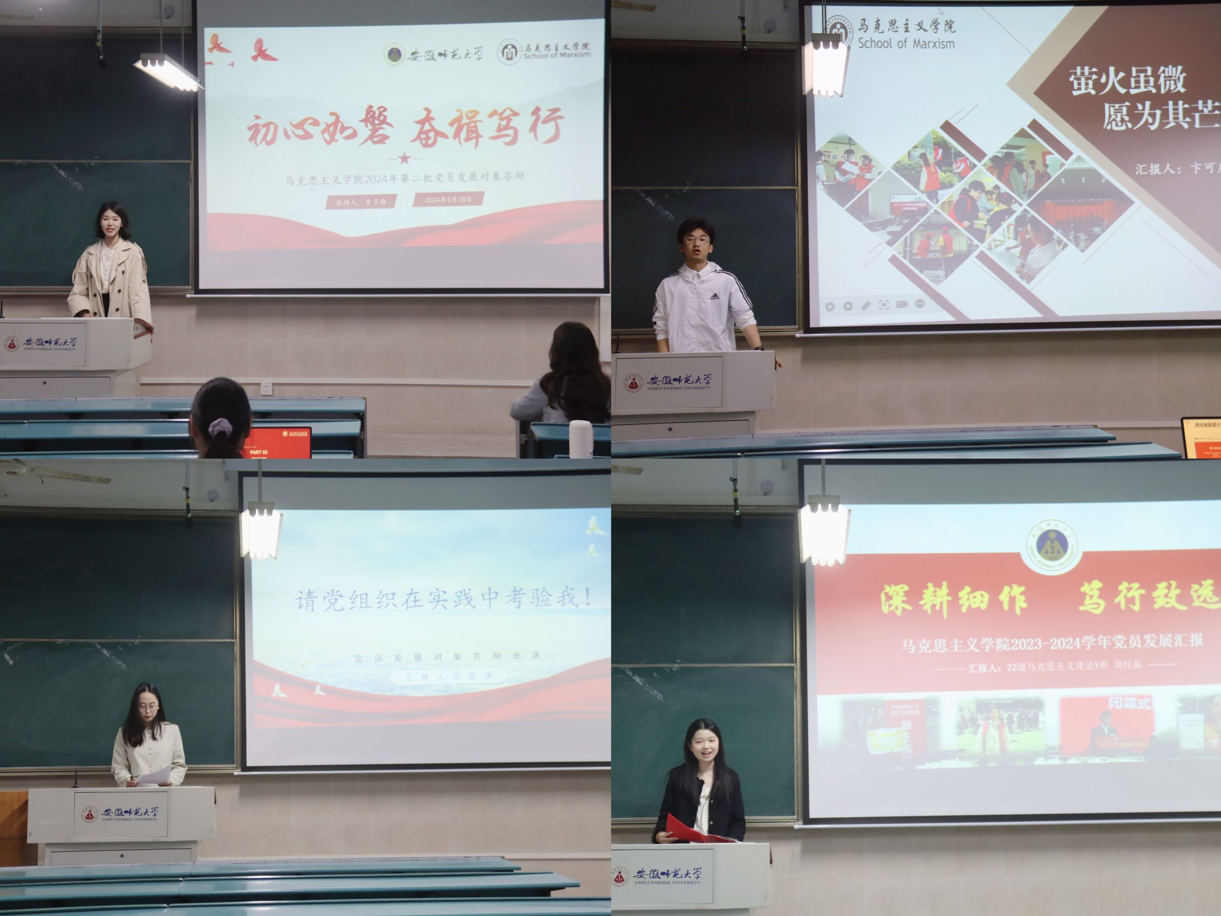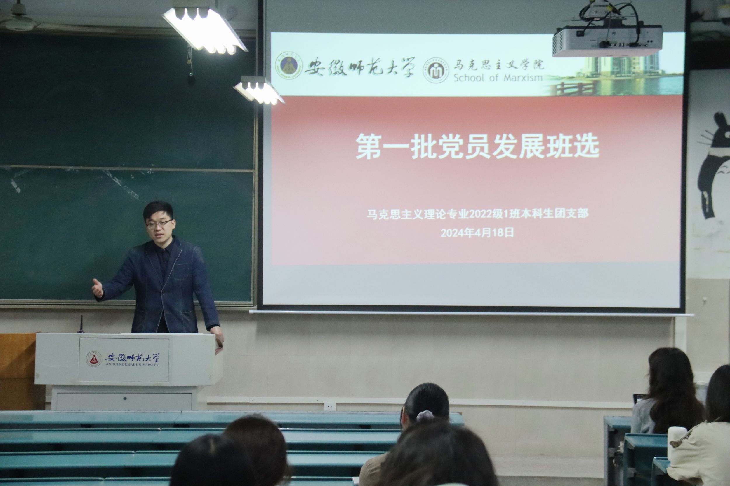 为端正班级同学入党动机,切实提高入党发展对象展质量,4月18日晚,2022级马克思主义理论一班于行知楼2020303教室举办第一批党员发展班选会。本次会议由胡子月主持,辅导员季行健出席,班级全体同学参加。