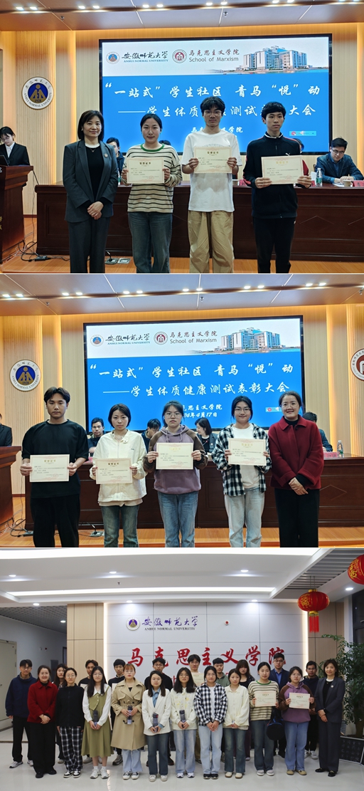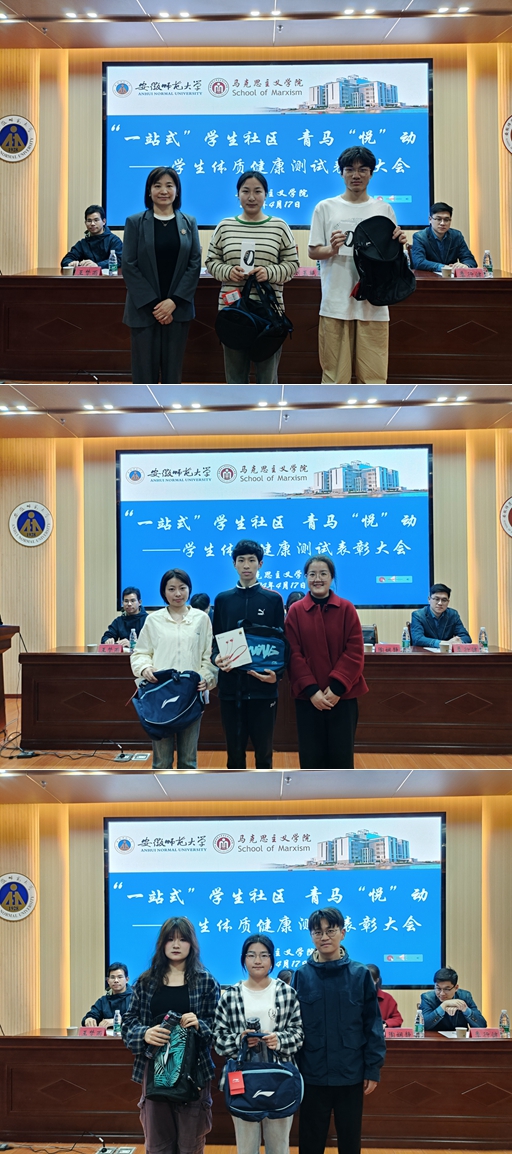 为进一步增强学生体质健康意识,学院于4月17日下午在文典楼G108报告厅举办青马“悦”动学生体质健康测试表彰大会,学院党委副书记刘玉艳、团委书记陶娴静、团委副书记沈镇、季行健、2023级本科生辅导员王梦雨参加。